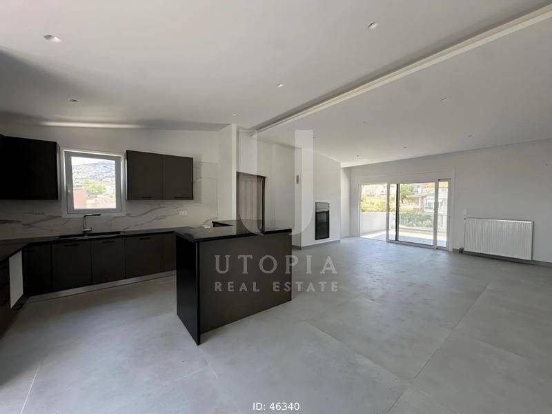 Keratea - Apartment 112sqm unfurnished, bedrooms 3, levels 1, 2nd, newly built, year built 2023, energy class D, living room, hall, kitchen, 2 bathrooms, heating type: autonomous (heat pump), air condition, parking covered, quiet, dual aspect apartment, luminous, unobstructed view view, frontage, storage space 15sqm, solar heater, fireplace, balconies, tents, elevator, aluminum frames, double glazed windows, door screen, ceramic tiles floors, separate kitchen, secure door, alarm, video doorbell, residential zone, access from asphalt, close to park (up to 1500m).