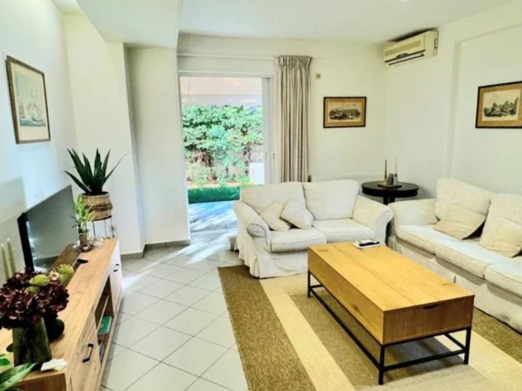 Πλήρως επιπλωμένο και εξοπλισμένο διαμέρισμα Ισογείου με θέα στον κήπο . Διαθέτει 2 υ/δ, μπάνιο, καθιστικό και ανεξάρτητη κουζίνα (εξοπλισμένη με όλες τις ηλεκτρικές συσκευές, πιάτια, ποτήρια κλπ), πόρτα ασφαλείας, βεράντα με πρόσβαση στον κήπο, 3 κλιματιστικά, θέση στάθμευσης πυλωτής. Κοντά σε πάρκο και την πλατεία της Βούλας