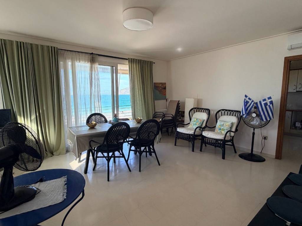 Apartment for Rent #D-13370 LOYTRAKI LOUTRAKI SEAFRONT APARTMENT FOR RENT Seafront 75 sq.m. apartment, located on the 1st floor, front-facing, with sea view. Layout: Entrance hall -Spacious living room with views of Loutraki beach Kitchen- 2 bedrooms- Bathroom with bathtub Additional features: Aluminum window frames with insect screens and shutters -Solar water heater Parking space- Electrical appliances: refrigerator, electric hobs (no oven) No internet connection Location: Situated on the seafront, next to restaurants and within walking distance of the shops of Loutraki. ⚠️ Pets are not allowed. Contact: Dedakis Real Estate 302744028988, 306946939381 Additional Features Parking Front and rear view Veranda Facing infront Double glass Electrcical devices Shinny in the city plan A/C Solar Safety door Screens Distance from the Sea: 0 m Access: Access from pedestrian zone Zone: Residential zone View: Sea view Windows condition: Windows alluminum