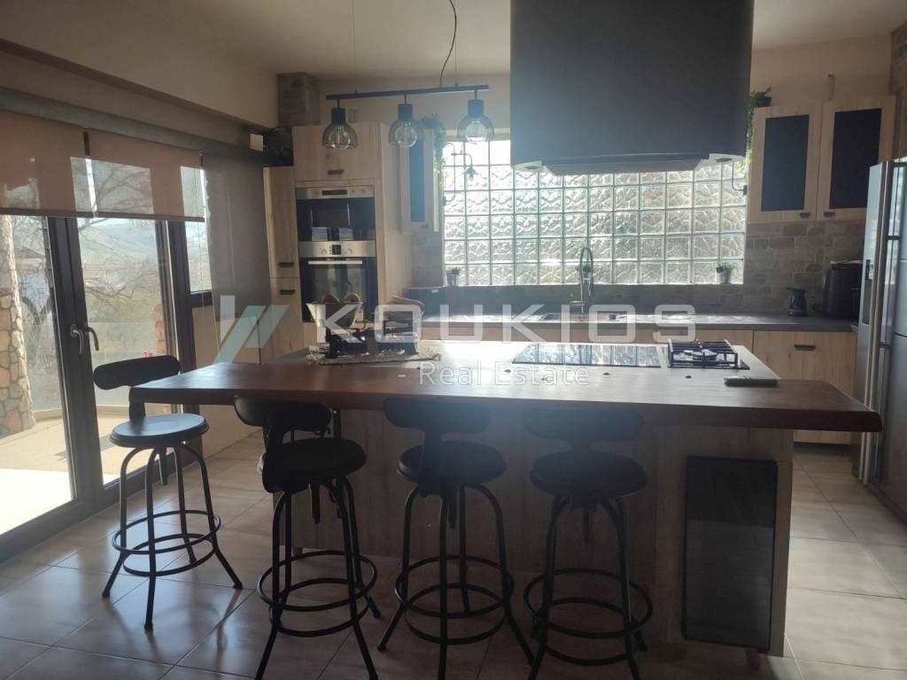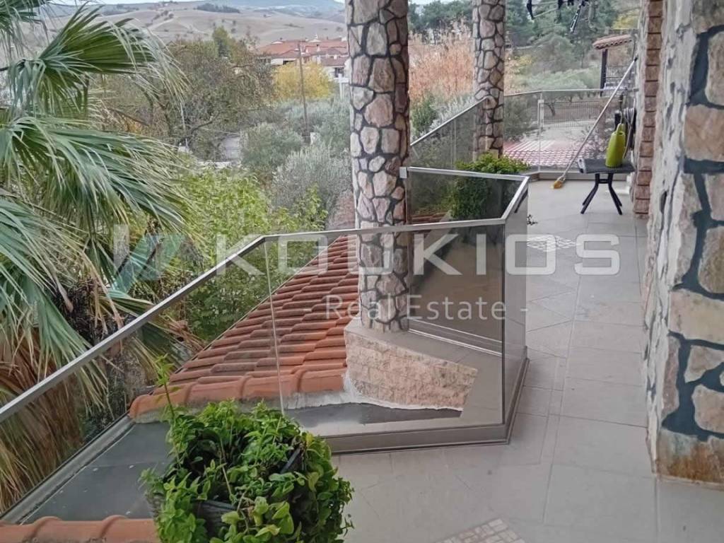 For sale is a luxurious detached house with a total area of 450 sq.m. on a plot of approximately 1,000 sq.m., in an excellent location in Tagarades, Thermi Municipality, close to shops and schools. It is an ideal choice for both home ownership and investment development. The property consists of three levels: •Ground floor: 110 sq m Independent apartment with spacious living room and dining room, separate kitchen counter, WC and energy fireplace connected to the radiators. •1st & 2nd floor totaling approximately 250 sq m They include two large bedrooms of approximately 25 sq m each, a bathroom, a master bedroom with a dressing room and a private bathroom with a hydromassage and a sitting room, with a comfortable and functional layout. •Loft 80 sq m. Suitable for an additional bedroom, office or recreation area. The house was built with an emphasis on quality and durability: •Natural stone cladding (approximately 800 tons) •65 cm masonry •Waterproofing, soundproofing and enhanced earthquake protection •Thermal insulation It consists: •Oil heating •2 energy fireplaces •5 air conditioners •Synthetic frames with double glazing •Security door •Alarm system •Pre-installation of solar water heater •Tile-laminate flooring •2 parking spaces •Perimeter pergolas and verandas of approximately 100 sq.m. The villa can be delivered fully furnished and equipped, with all electrical appliances and furniture. Construction began in 2003 and was completed in 2018, where it is currently inhabited. Additional advantages: •Possibility of additional building of 170 sq.m. on the plot •Independent two-story shop with separate entrance, available additionally at the price of 250,000€, with possibility of changing use to a residence The property is located in an elevated position with open views, combining luxury, privacy and excellent construction. **In order to suggest the property, it is necessary to show your identity or your tax number and record them in the suggestion order, according to Law 4072/11-4-2012 Official Gazette 86 A.**