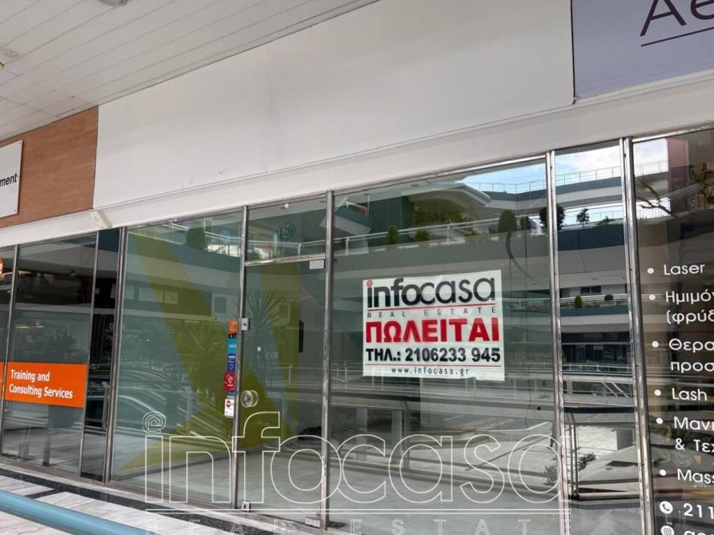 Μαρούσι – Εμπορικό Κέντρο Αίθριο. Διατίθεται προς πώληση ισόγειο κατάστημα- που μπορεί να λειτουργήσει και ως γραφείο- 46 τ.μ. με πατάρι 23 τ.μ. σε εξαιρετική εμπορική τοποθεσία στο Μαρούσι, εντός του εμπορικού κέντρου ''Αίθριο''. Το ακίνητο βρίσκεται κοντά σε συγκοινωνίες και άλλες εμπορικές επιχειρήσεις και σε οικιστική περιοχή, εξασφαλίζοντας υψηλή επισκεψιμότητα και εύκολη πρόσβαση. Η κατασκευή του κτιρίου έγινε το 1984 και το κατάστημα ανακαινίστηκε πλήρως το 2000, διατηρώντας την πολύ καλή του κατάσταση. Διαθέτει 2 χώρους (ισόγειο και πατάρι), 1 WC, ενώ παρέχεται θέση στάθμευσης σε υπόγειο χώρο. Επιπλέον εξοπλισμός και χαρακτηριστικά: Κλιματισμός, δάπεδα από μάρμαρο, ρεύμα, εσωτερική σκάλα, κάμερες ασφαλείας, σύστημα πυρόσβεσης. Βρίσκεται σε εμπορικό δρόμο (Αγίου Κωνσταντίνου), ιδανικό για εταιρικά γραφεία, επαγγελματικούς χώρους ή κατάστημα υγειονομικού ενδιαφέροντος. Στο εμπορικό κέντρο παρέχεται και φύλαξη - security. Τιμή: €110.000. Infocasa, Τηλέφωνο Επικοινωνίας: 2106233945 - 6932100109, email: info@infocasa.gr
