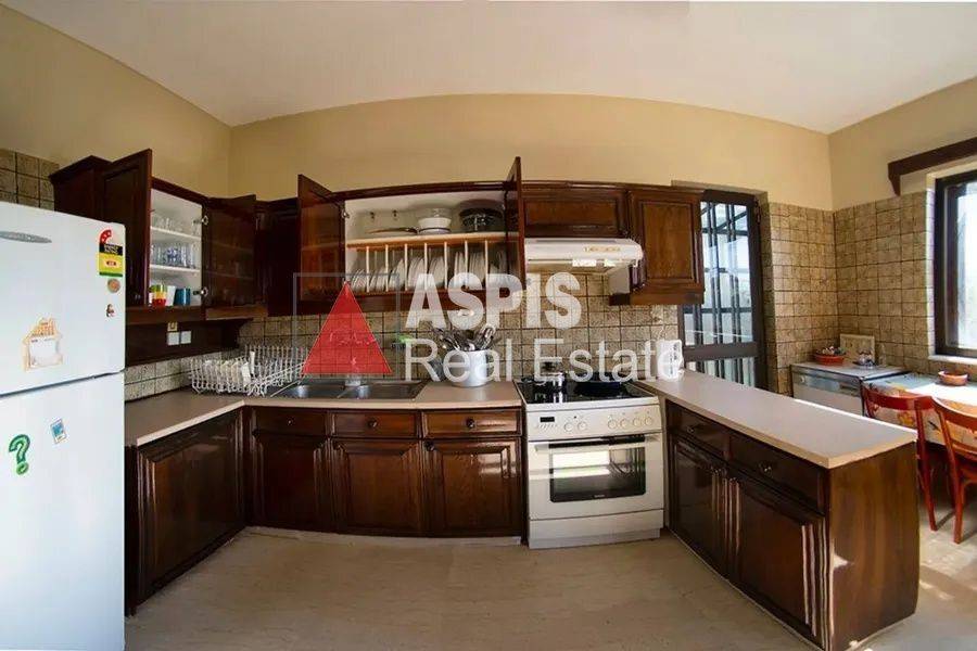 ID.2159068 - House for Rent, floor: 1st, 2nd (2 Levels), in the area: Saronida. The area of the property is 280 sq.m. and is located on a plot of 1,000 sq.m.. It consists of: 5 Bedrooms (1 Master), 4 bathrooms, 1 wc, 2 kitchens, 1 living room, 1 fireplace, and has parking in an open space. It was built in 1985. The property has air conditioning, and a solar water heater, aluminum frames, floors: marble, energy certificate: E. The property is in very good condition and is close to local transportation, 600 meters from the sea, 500 meters from the market. It is corner, bright, airy, with an unlimited view. It is suitable for vacation home, short-term rental and has the following features and advantages: Awnings, Electrical Appliances, Interior staircase, Pool, Garden, Alarm. It is located in a beautiful, quiet neighborhood, in a central spot with easy access to the market, very close to the main beach of Saronida (600 meters). The maisonette has a pool with sunbeds and umbrellas. Surrounding it is a beautiful garden for exclusive use, with lemon trees, orange trees, grapefruit trees, medlar trees, fig trees. The property has an unlimited view in the front and back. It is rented furnished for short-term rental. The information and characteristics of the properties have been recorded based on the information and documents that have been provided to us. The location of the property on the map is indicative. The energy class of he properties for which a EPC is required may differ from that stated. All attendees during the indication of the property must present their identity card and their tax identification number (T.I.N.), in accordance with Law No. 4072/2012 - Government Gazette 86/A/11-4-2012. Aspis Real Estate South, Contact Phone: 2109652230, email: glyfada@aspis-realestate.gr, website: www.aspisrealestate-south.gr