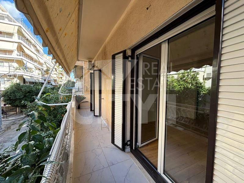 Kallithea (Attica - Southern Suburbs) - Floor Apartment 105sqm unfurnished, bedrooms 3, levels 1, 1st, excellent condition, year built 1980, energy class D, living room, hall, kitchen, bathroom, heating type: autonomous (oil), air condition, quiet, dual aspect apartment, luminous, unobstructed view view, frontage, balconies, large balconies, balcony 10sqm, tents, aluminum frames, double glazed windows, door screen, wood floors, secure door, pets allowed, residential zone, east-western orientation, close to μετρό/ηλεκτρικός (up to 0), close to σχολείο (up to 0), close to αγορά (up to 0).