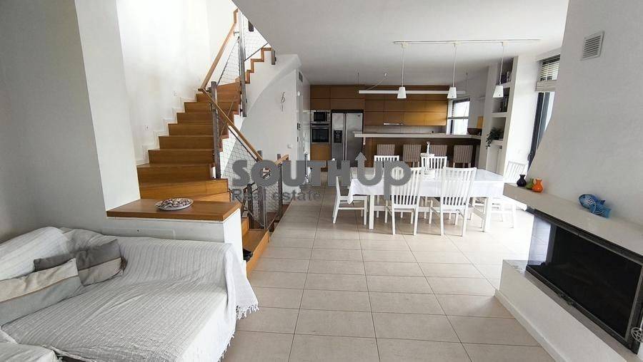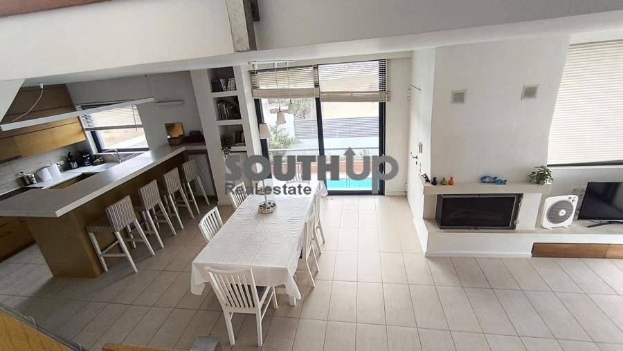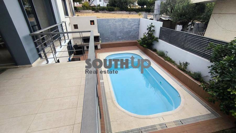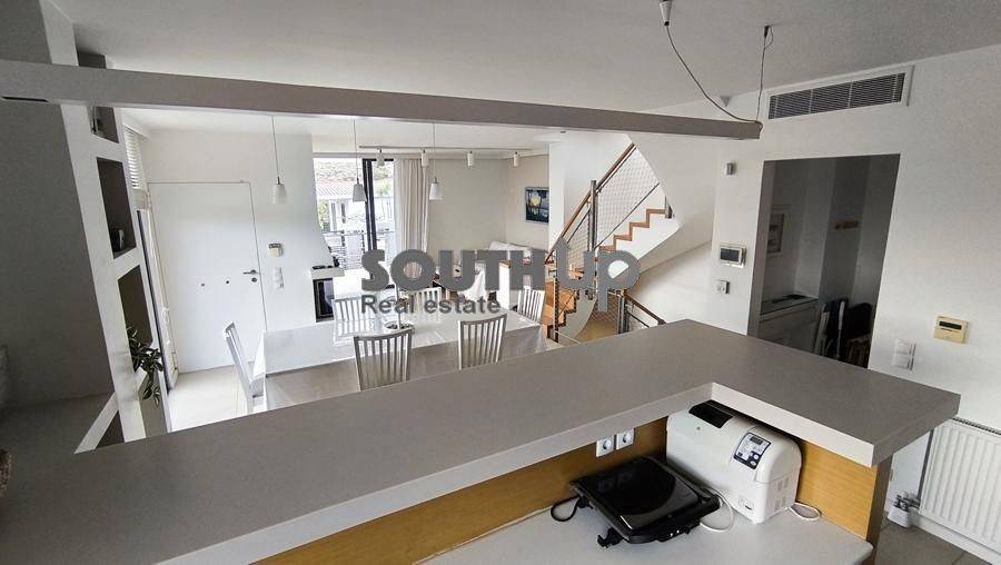 Anavyssos, Mavro Lithari - Detached House 210sqm plot 600sqm, fully furnished, bedrooms 3, master bedroom, levels 3, semi-basement (80sqm, 3 bedrooms, bathroom) - ground floor (80sqm, living room, dinning room, kitchen, wc) - 1st (50sqm, 1 bedrooms, kitchen, playroom), excellent condition, year built 2009, energy class B, living room, kitchen, 2 bathrooms, wc, heating type: autonomous (oil), air condition, parking open space, quiet, dual aspect apartment, luminous, sea view, frontage, painted, electric roller shutters, storage space, solar heater, fireplace, large balconies, tents, garden, private terrace, built in appliances, aluminum frames, double glazed windows, door screen, ceramic tiles floors, without common charges, three phase electricity, secure door, surveillance cameras, video doorbell, luxurious, swimming pool, private pool, internal staircase, barbeque, playroom, laundry room, residential zone, southern orientation, access from asphalt, close to sea (up to 1500m).