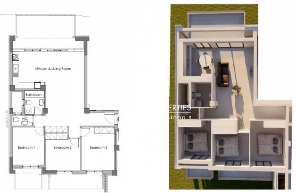 This property features 3 bedrooms, 3 living rooms, a kitchen and a bathroom. It also features 1 wc in total in a building with 2 floors.