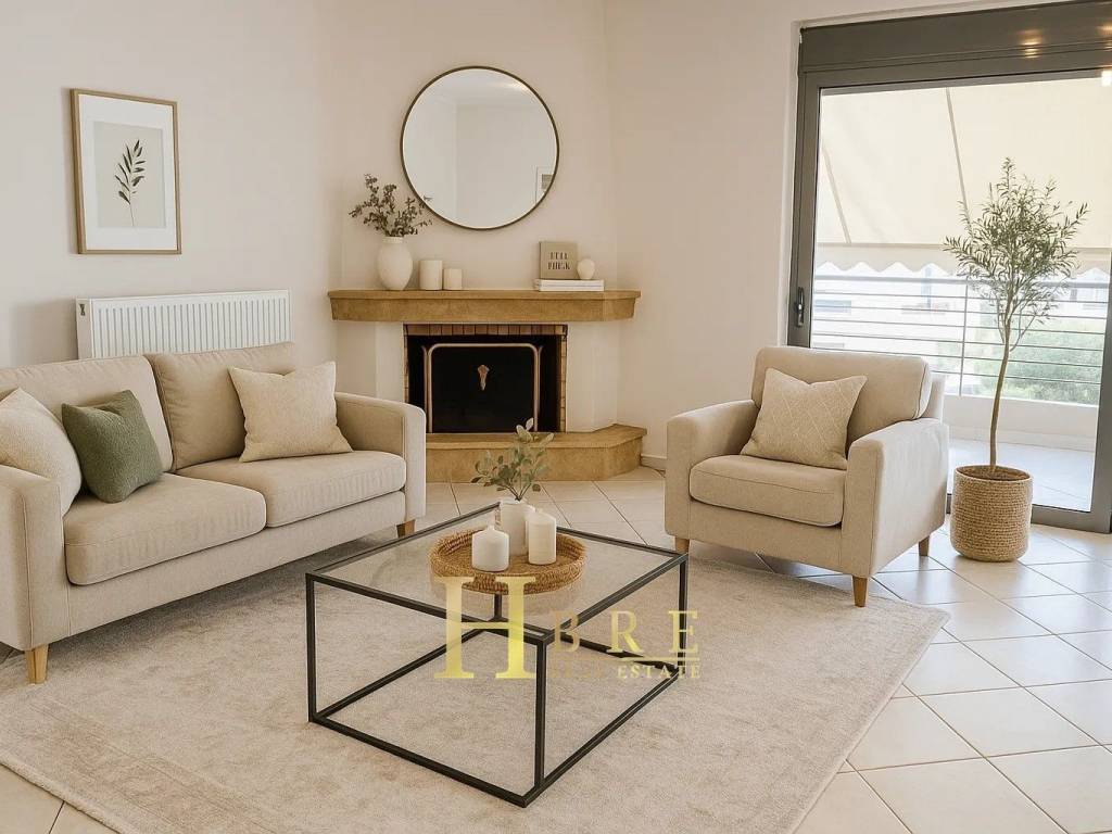 Ano Glyfada – Duplex Penthouse with Sea View In the heart of Ano Glyfada, very close to Vouliagmenis Avenue, the Glyfada center and local market, a bright and spacious duplex penthouse (3rd–4th floor), built in 2004, is available for sale. The residence, with a total surface of approx. 110 sq.m., features: 3 comfortable bedrooms 1 bathroom spacious living room with fireplace functional kitchen Additional amenities include: underground parking space storage room security door and alarm system autonomous heating triple-energy solar water heater The apartment stands out for its dual-aspect design and its open sea view, offering a high standard of living. Its location is strategic, only 1,800m from Elliniko Metro Station, ensuring easy access to public transport, while at the same time being within walking distance from Glyfada’s shopping and entertainment hub.