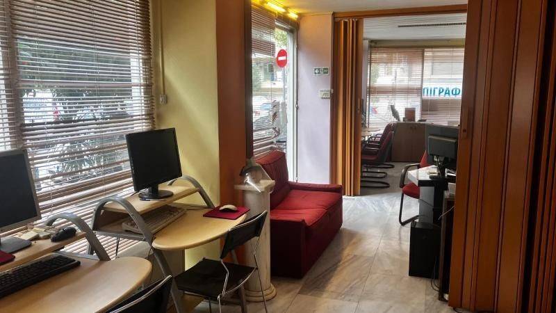 Ισόγειο κατάστημα, σε απόσταση 150μ. από την Κεντρική Πλατεία Νέας Σμύρνης. Συνολική Επιφάνεια: 110 τ.μ. ισόγειο και 110 τ.μ. πατάρι. Κατασκευή: Τμήμα του παταριού είναι από οπλισμένο σκυρόδεμα (μπετόν), ενώ το υπόλοιπο είναι σιδηροκατασκευή με δυνατότητα αποξήλωσης. Διαρρύθμιση: Ο χώρος είναι χωρισμένος με γυψοσανίδες σε μικρότερα δωμάτια. Υπάρχει η δυνατότητα πλήρους αποξήλωσης των χωρισμάτων για τη δημιουργία ενιαίου χώρου (open-plan)