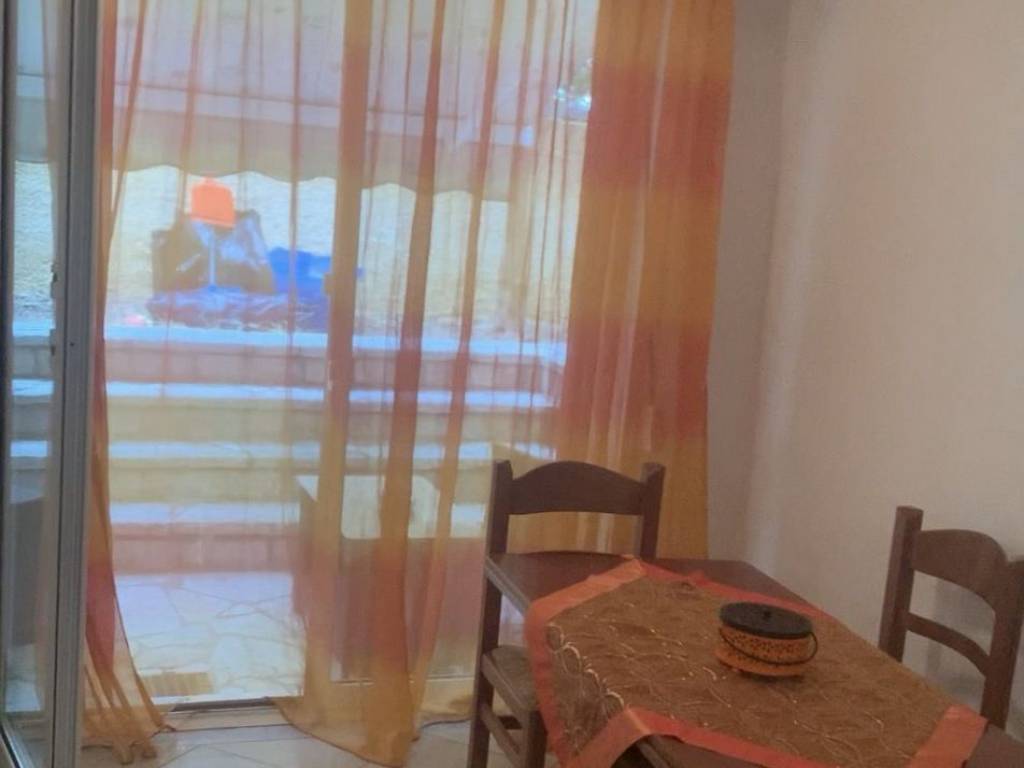 The apartment boasts a comfortable layout featuring one bedroom, a cozy living room, a well-appointed kitchen, and a modern bathroom. The property is complemented by elegant ceramic tile flooring, adding to its appeal.