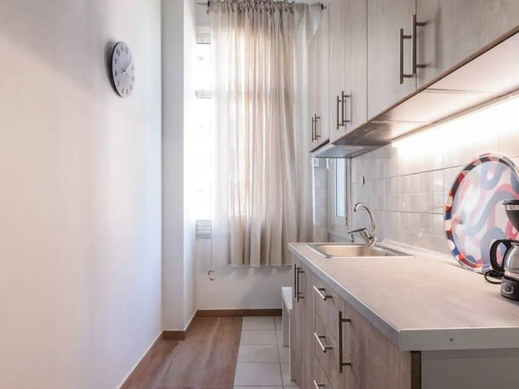 A modern and fully renovated studio apartment of 35 sq.m., located on the 2nd floor of a well-maintained apartment building, in a very central area of Thessaloniki, on Agiou Dimitriou Street. The apartment was renovated in 2024 and is offered fully furnished, featuring a functional layout and contemporary design. It also includes a balcony, providing natural light and comfort. The building is well maintained and equipped with an elevator. For added safety, there is a security entrance door both at the building entrance and at the apartment itself. Ideal for students or professionals seeking comfortable living in the city center, with immediate access to public transport, shops, cafes, and all essential amenities.