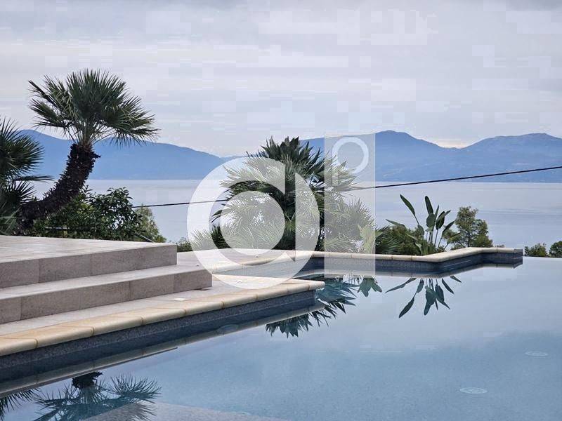Malesina, Osmaes - Detached House 112sqm plot 1093sqm, fully furnished, bedrooms 3, master bedroom, levels 1, ground floor (112sqm), excellent condition, year built 1997, renovation year 2024, energy class D, living room, hall, kitchen, 2 bathrooms, wc, heating type: autonomous (oil), air condition, parking open space, quiet, dual aspect apartment, luminous, frontage, painted, storage space 100sqm, fireplace, balconies, large balconies, garden, garden 890sqm, built in appliances, wooden frames, double glazed windows, door screen, ceramic tiles floors, without common charges, three phase electricity, night electricity discount rate, secure door, alarm, surveillance cameras, video doorbell, luxurious, swimming pool, private pool, internal staircase, barbeque, jacuzzi, pets allowed, within city plan, residential zone, sea front (1st row), northern orientation, access from asphalt, investment property.