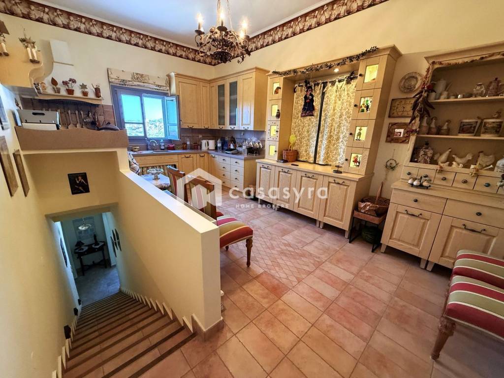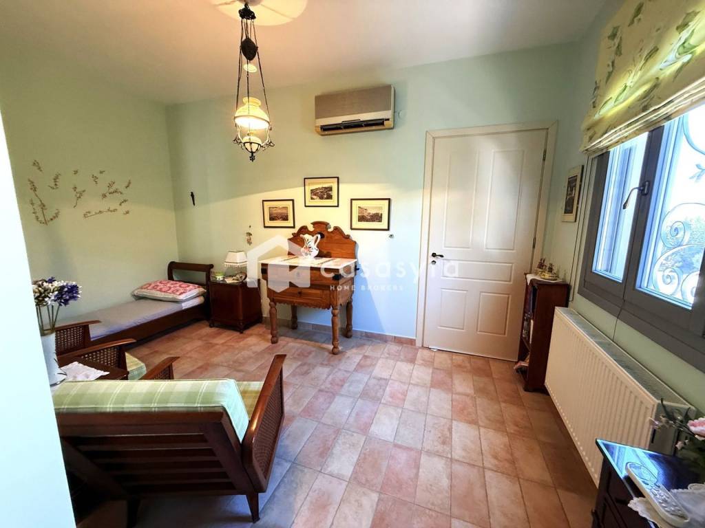 FOR SALE: luxurious detached house of 190 sq.m. on a 600 sq.m. plot in the heart of the traditional settlement of Episcopio, built with refined aesthetics and a neat style. It develops on two levels with the ground floor consisting of a guest house, laundry room with wardrobe and garage and has a total area of 65 sq.m. The first floor has a total area of 125 sq.m. and contains an open plan living room-sitting room with fireplace-dining room, kitchen with pantry as well as 2 bedrooms and two bathrooms. It is sold fully furnished and equipped with antique furniture, elaborate ornaments and knick-knacks as well as paintings that give another prestige to the property and crown its luxury and character. Additionally, a great advantage of the plot is its lush, well-kept garden as well as the large terraces from which we can enjoy open views of the sea and the mountains.