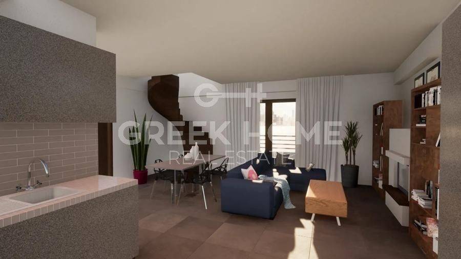 Moschato - Full floor Maisonette 139sqm plot 200sqm, unfurnished, bedrooms 4, levels 2, 4th - 5th, under construction, constructionstage bricks, year built 2026, energy class A, living room, hall, kitchen, 3 bathrooms, wc, heating type: individual unit (natural gas), air condition, parking ground floor, quiet, dual aspect apartment, luminous, unobstructed view view, frontage, painted, storage space 5sqm, solar heater, external thermal insulation, fireplace, balconies, large balconies, elevator, thermal shut-off frames, double glazed windows, door screen, ceramic tiles floors, office, secure door, video doorbell, luxurious, internal staircase, pets allowed, south-eastern orientation, investment property, special offer, close to metro/train (up to 200m), close to market (up to 100m).