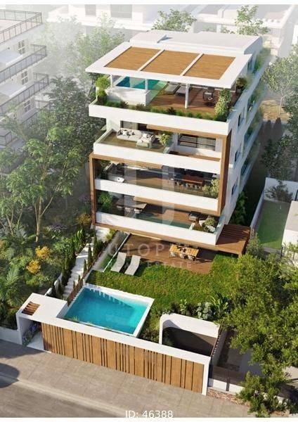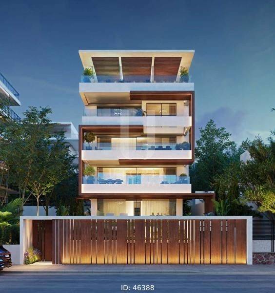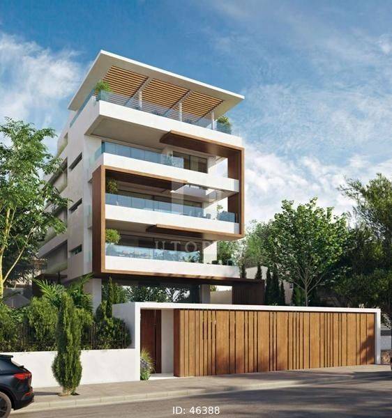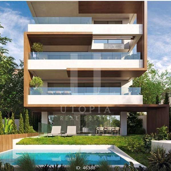 Vari, Varkiza - Floor Apartment 112sqm plot 650sqm, unfurnished, bedrooms 3, levels 1, 2nd, under construction, year built 2026, energy class A, living room, hall, kitchen, bathroom, wc, heating type: autonomous (fan coil), air condition, parking ground floor, quiet, dual aspect apartment, luminous, unobstructed view, frontage, storage space, solar heater, external thermal insulation, large balconies, tents, elevator, garden, aluminum frames, double glazed windows, door screen, wood & tile floors, secure door, alarm, video doorbell, luxurious, swimming pool, within city plan, residential zone, south-eastern orientation, access from asphalt, close to square (up to 200m), close to sea (up to 500m), close to park (up to 200m), close to market (up to 500m).