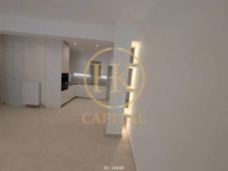 Alimos, Kalamaki - Apartment 83sqm bedrooms 2, master bedroom, 1st, fully renovated, year built 1966, renovation year 2025, energy class A, living room, kitchen, 2 bathrooms, heating type: autonomous (natural gas), air condition, quiet, dual aspect apartment, luminous, frontage, electric roller shutters, storage space, balconies, large balconies, balcony 22sqm, elevator, garden, built in appliances, aluminum frames, double glazed windows, door screen, ceramic tiles floors, night electricity discount rate, secure door, alarm, luxurious, pets allowed, within city plan, residential zone, southern orientation, access from asphalt, price is negotiable, investment property, close to sea (up to 100m), close to bus stop (up to 100m), close to market (up to 100m).