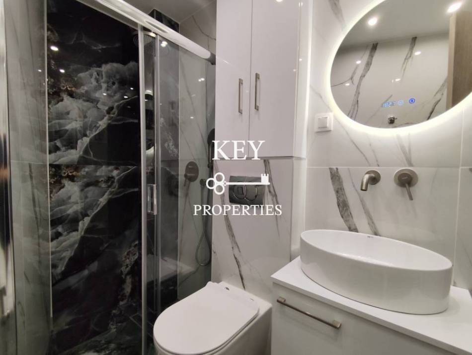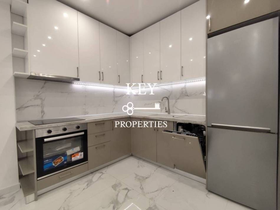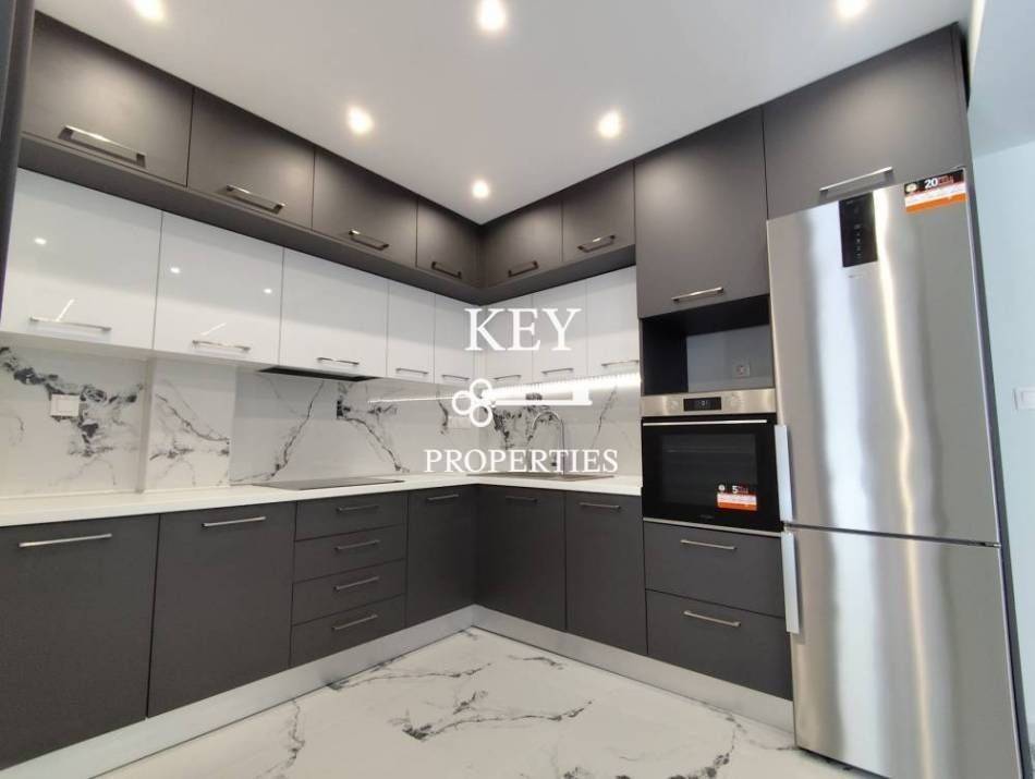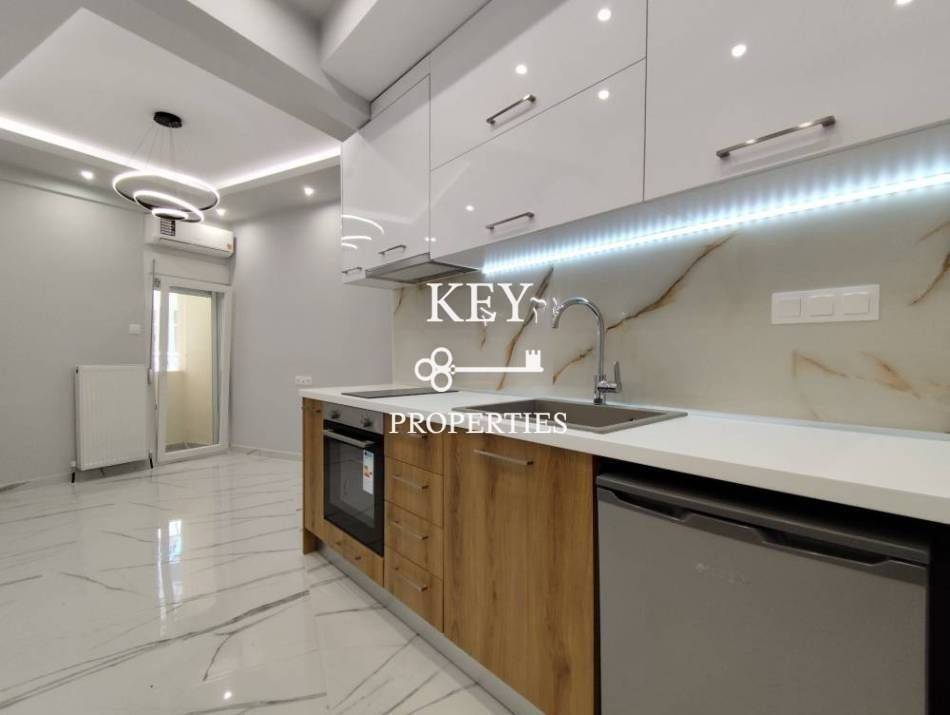 For sale, a luxurious fully renovated apartment of 49sq.m., on the 4th floor with elevator. It consists of two spacious bedrooms, an open plan kitchen with living room, a bathroom and a large terrace. It has electrical appliances, air conditioning, double-glazed windows with insect screens, an armored door and individual natural gas heating. It is situated in a unique location in the heart of the city, next to bus and metro stop, school and the market. It is suitable for investment as it is rented for €650/month.