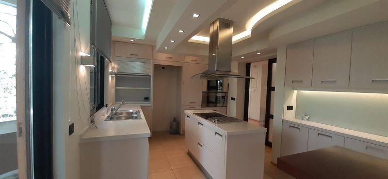 Ground floor independent maisonette in a property with 2 other apartments (three-storey house). The property consists of 2 floors: ground floor with terrace and small garden and large independent playroom with opening to the back of the building. Ground floor: Living room - dining room with their terrace + garden - kitchen with its own balcony - hall - sitting space or office - 2 rooms with en suite bathrooms Semi-basement:. A third bedroom with wc completely independent is located in the very bright semi-basement area of ​​the maisonette. Recently renovated (2010) with underfloor heating and natural gas connection, it has wooden floors throughout, beautiful lighting design, kitchen furniture from the Deloudis company, built-in stainless steel Siemens oven, Siemens kitchen on a central bench and bar table. Dimensions: Living room 9.90x4.69, bedroom 3.04x4.5, bedroom 3.12x3.42, playroom 8.26x3.09