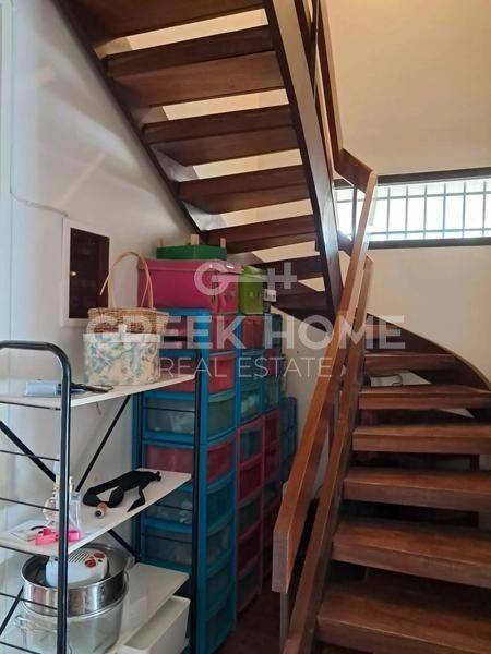 Kifissia, Kefalari - Full floor Maisonette 200sqm bedrooms 4, master bedroom, levels 2, 1st - 2nd, good condition, year built 1982, energy class F, living room, kitchen, 3 bathrooms, wc, heating type: autonomous (oil), parking covered, quiet, luminous, corner, unobstructed view view, frontage, electric roller shutters, storage space 16sqm, fireplace, balconies, large balconies, elevator, aluminum frames, double glazed windows, wood & tile floors, separate kitchen, office, secure door, internal staircase, close to park (up to 100m), close to bus stop (up to 100m).