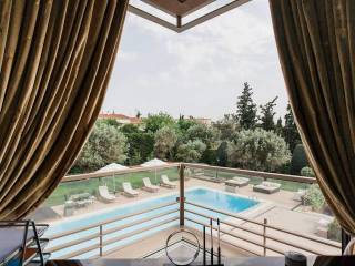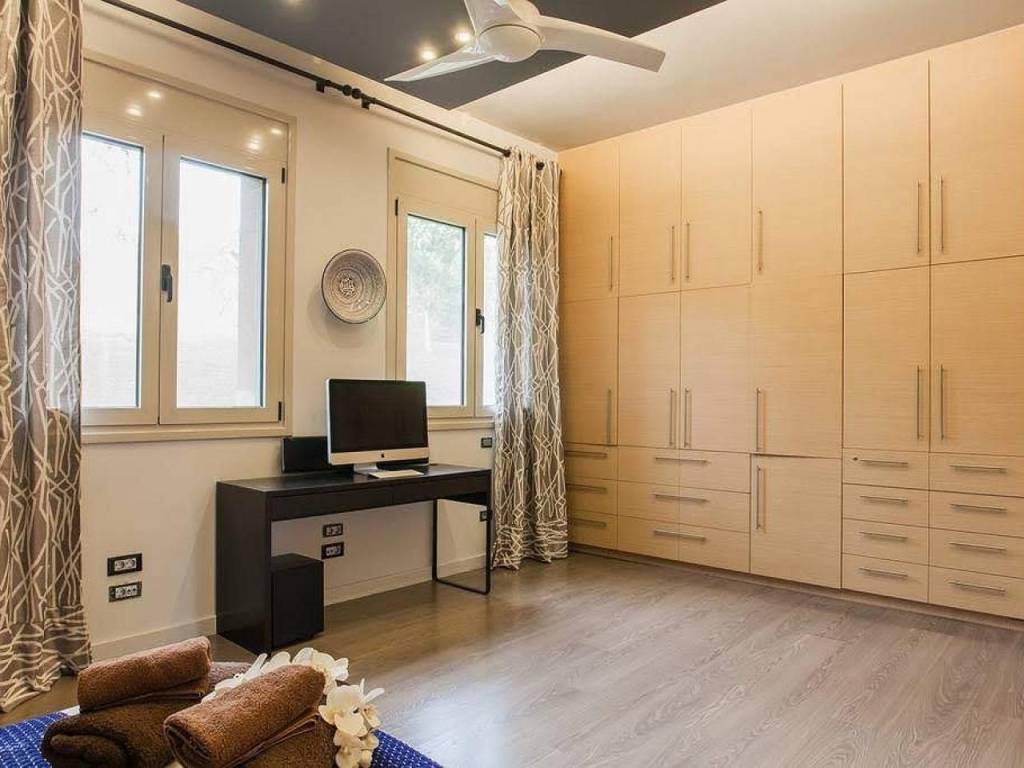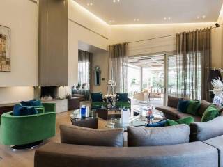 The villa consists of 6 master bedrooms, each with its own bathroom and storage spaces, one of which is intended for auxiliary staff, 1 guest WC, 4 living rooms, an office and 2 fully equipped kitchens. The interior spaces communicate with an internal courtyard and offer views of the large swimming pool and the outdoor areas with deck floor, suitable for events of up to 200 people.