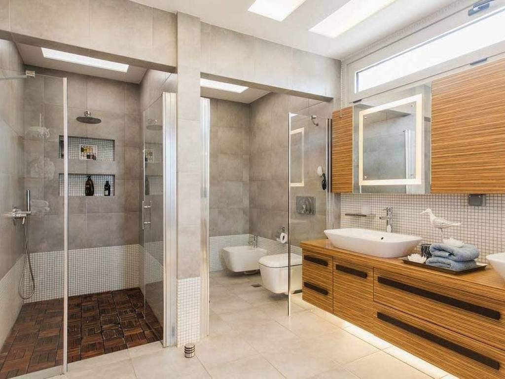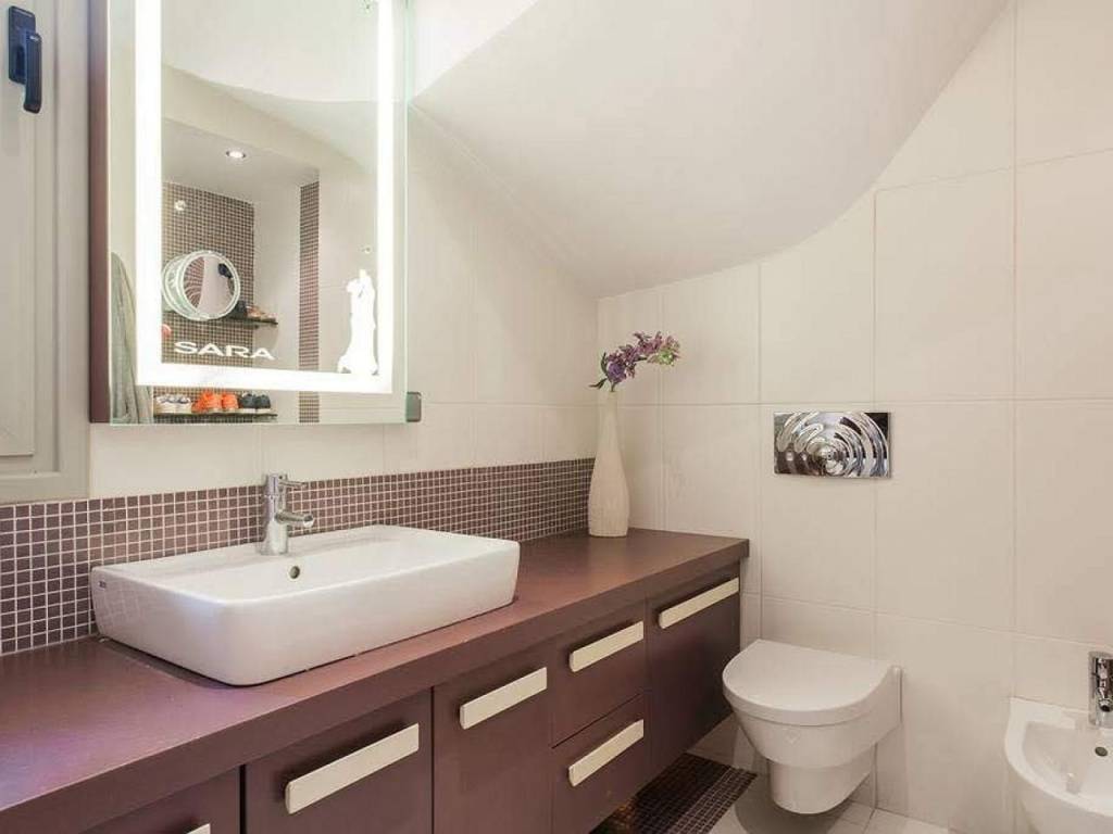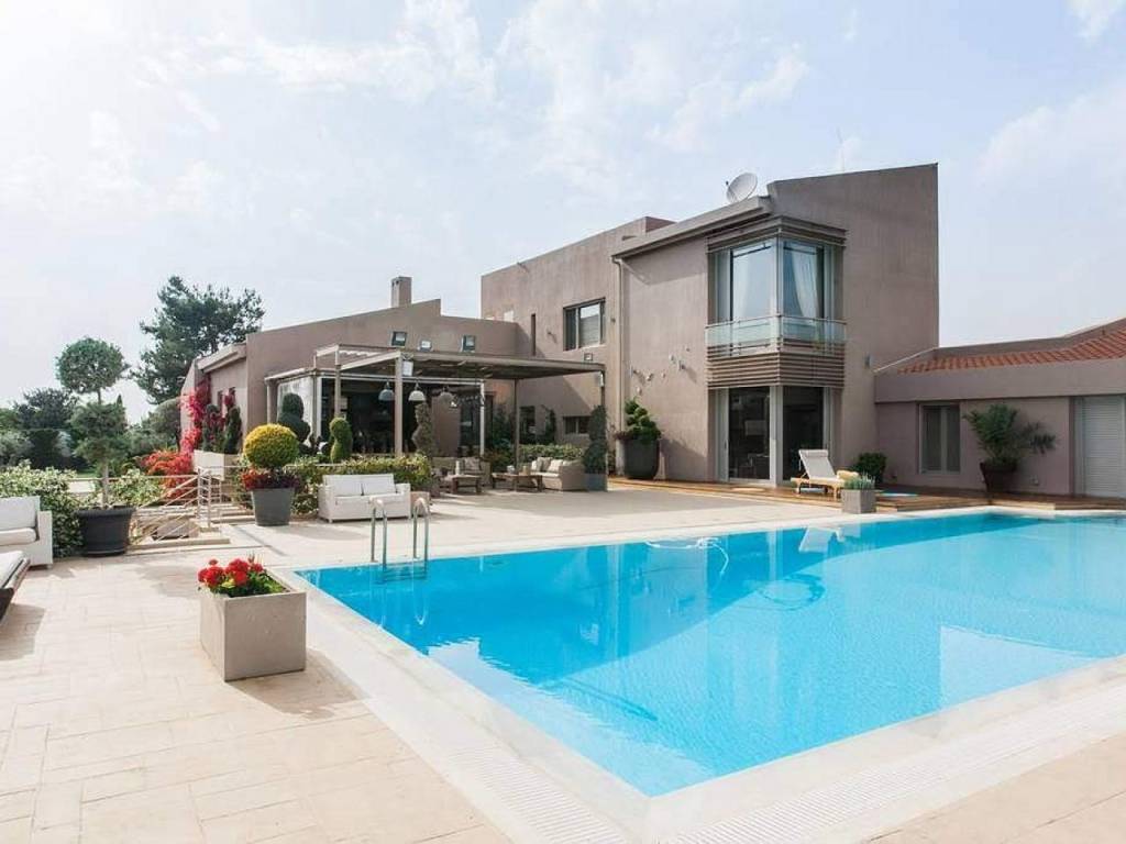 In the surrounding area one can find huge areas of greenery, a swimming pool, BBQ, 25 olive trees about 100 years old and a multitude of fruit trees (apple trees, cherry trees, lemon trees, pomegranate trees, mulberries), which are watered through drilling. At the entrance of the estate there is an independent security guard house. It has an indoor parking space for two, as well as multiple parking spaces in the privately owned surrounding area.