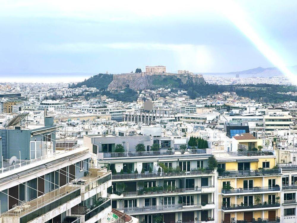 Fully and luxuriously renovated penthouse high aesthetic apartment, 150 sq.m, 7th floor with attic and stunning superb view of Acropolis - Athens - sea from the reception area. The 7th floor (125 sq.m) consists of 2 master bedrooms, 2 bathrooms, wc, laundry room, reception area with fireplace, semi-independent kitchen equipped with built-in electrical appliances and on the attic (25 sq.m) there is a room with a bathroom that can be used as an office, living room, or 3rd bedroom. The property features independent floor heating with gas, central air condition system, wood striped floors, double-glazed aluminum windows and electric shutters, alarm system, safety door and large verandas. Photographic material is available upon serious interest.