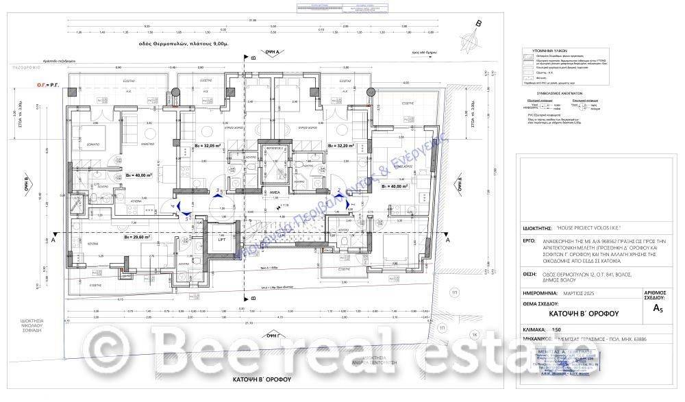 Πωλείται Διαμπερές Διαμέρισμα 72 τ.μ., 1ου Ορόφου, Πολυτελούς Κατασκευής (Α-PLUS) – Θέση Στάθμευσης και Αποθήκη Αποκλειστικά απο το γραφείο μας ΠΑΡΑΔΟΣΗ ΤΕΛΟΣ 2026 Πωλείται σύγχρονο διαμέρισμα 72 τ.μ., 1ου ορόφου, σε πολυκατοικία ενεργειακής κλάσης Αplus, σε πολύ καλή και οργανωμένη γειτονιά του Βόλου στην οδό Θερμοπυλών 12. Πρόκειται για ένα διαμπερές, προσόψεως και ιδιαίτερα φωτεινό ακίνητο, με μεγάλες βεράντες και άνετους εξώστες, ιδανικό για οικογένειες ή για όσους αναζητούν ποιοτική και λειτουργική κατοικία. Το διαμέρισμα αποτελείται από δύο υπνοδωμάτια, ένα μπάνιο και ευρύχωρη σαλονοκουζίνα, με σύγχρονη διαρρύθμιση και άνεση στην καθημερινή χρήση. Διαθέτει αυτόνομη θέρμανση με εγκατεστημένο λέβητα φυσικού αερίου, κλιματισμό (aircondition), ενεργειακά κουφώματα αλουμινίου με διπλά τζάμια και σίτες, καθώς και πόρτα ασφαλείας. Η πολυκατοικία είναι υψηλών προδιαγραφών (Αplus), με φωτοβολταϊκά στην ταράτσα, εξασφαλίζοντας πολύ χαμηλά κοινόχρηστα. Υπάρχει ασανσέρ και υποδομή φόρτισης ηλεκτρικών οχημάτων. Στην τιμή περιλαμβάνονται ιδιωτική θέση στάθμευσης και αποθήκη. Η τοποθεσία του ακινήτου προσφέρει άμεση πρόσβαση σε σχολεία, super market, στάσεις λεωφορείων, αγορά, πρατήρια καυσίμων, καθώς και εύκολη σύνδεση με τον Περιφερειακό, το κέντρο του Βόλου και τη θάλασσα, καθιστώντας το ιδανικό για μόνιμη κατοικία με καθημερινή ευκολία μετακινήσεων. Το ακίνητο παραδίδεται στο τέλος του έτους και αποτελεί εξαιρετική επιλογή για οικογένειες που αναζητούν σύγχρονη, οικονομική και ποιοτική κατοικία, αλλά και για όσους θέλουν ένα ακίνητο με διαχρονική αξία. Τα φωτορεαλιστικα (render) δεν ανταποκρίνονται πλήρως στις κατόψεις. Για υπόδειξη ή παρουσίαση Νίκος Κερασιώτης Σύμβουλος Ακινήτων Real Estate Developer Bee Iolkos Real Estate 6984435809 24210-78205