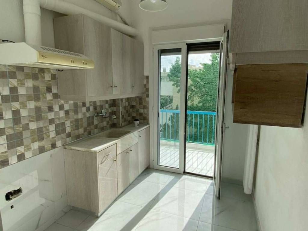 (code 2521) Glyfada, Golf: For rent renovated bright Apartment 50sq.m. facade on the 1st floor with elevator with central oil heating. It consists of 1 bedroom, 1 kitchen, 1 living room, terrace and bathroom. It is painted. It is located close to public transport, market, schools and has a nice view, aluminum frames with double glazing, security door, air conditioning, energy class Β, tiled floors, awnings, mosquito nets, solar water heater. It is ideal for a couple, students or employees.
