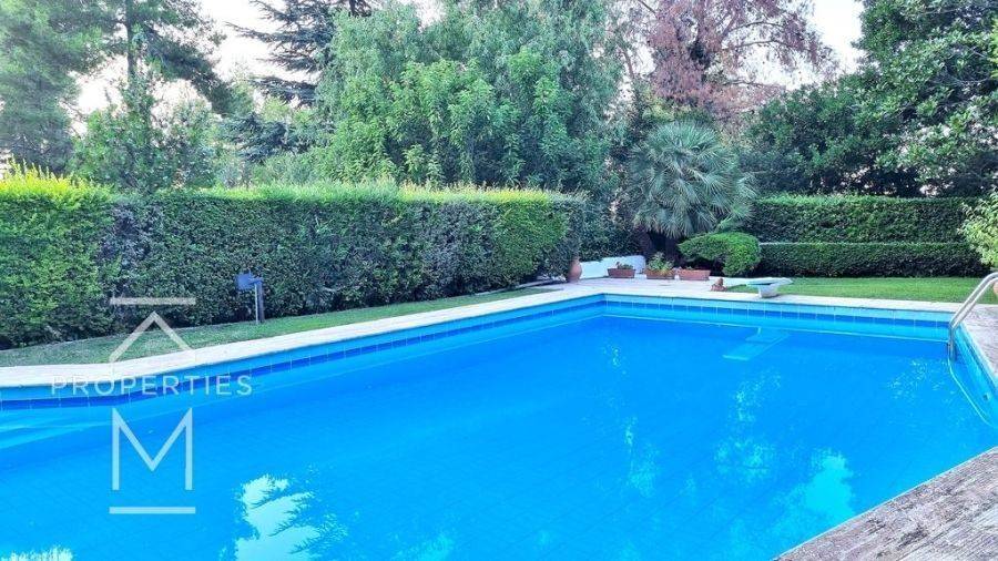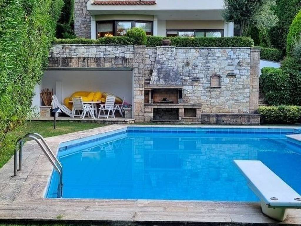 Dionysos, Detached house For Sale, 454 sq.m., In Plot 830 sq.m., Property Status: Amazing, Floor: Ground floor, 3 Level(s), 4 Bedrooms (1 Master), 2 Kitchen(s), 3 Bathroom(s), 1 WC, Heating: Autonomous - Petrol, View: Mountain View, Building Year: 1995, Energy Certificate: C, 2 parking(s), Floor type: Wooden floors + Marble, Features: Security alarm, Storage room, Fireplace (2), Electric Appliances, Playroom, Internal Staircase, Double Glazed Windows, Window Screens, Balconies, BBQ, Luxury, Airy, Roadside, Bright, Solar water system, Boiler, Grass, Automatic Watering, Trees, Swimming pool, Back yard (Garden), Price: 1.000.000€. KM Properties, Tel: 6981009333, email: katerina.miltsakaki@gmail.com