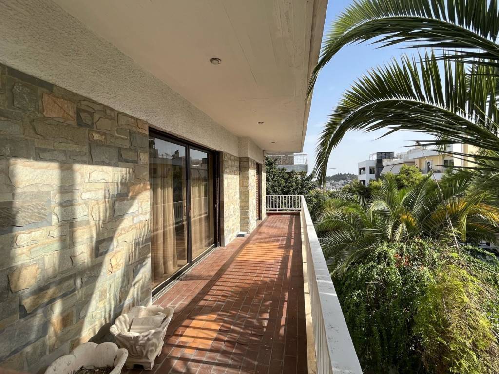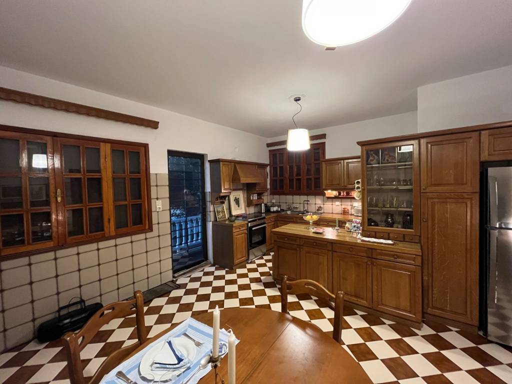 On Papandreou Street in Haidari, a 130 sq.m. detached house is available for rent. It features 2 bedrooms, 1 bathroom, and 1 WC, a large kitchen with ceramic hobs and built-in cabinets, and marble and wooden floors. The property is unfurnished, includes a fireplace, aluminum window frames, and a solar water heater. Additional features include a security alarm, double-glazed windows, oil heating, two large loft storage areas, a garage, balconies, and a yard. There is no elevator.