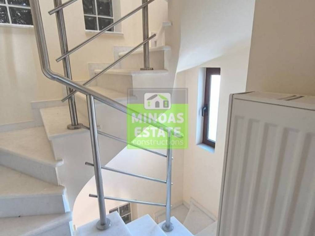 Nea Kydonia, Galatas: For rent airy, bright Maisonette 250 sq.m. luxury, on 3 levels with autonomous oil heating and air conditioning in all rooms. It consists of 5 bedrooms, 2 living rooms, kitchens, storage and 3 bathrooms. It is a 150 sq.m. maisonette and a 100 sq.m. independent apartment that is connected by an internal staircase but also has its own external entrance. It is also available with some furniture, with electrical appliances, built in 2007. It will be delivered painted, and is located in an ideal part of the area near SCHOOLS-PHARMACIES-SUPER MARKET-BEACH. It has aluminum frames with double glazing, security door, external (covered) parking spaces, tile floors with internal marble stairs, screens, solar water heater. It is ideal for families. Price €1,800 Property Code: #E-201053