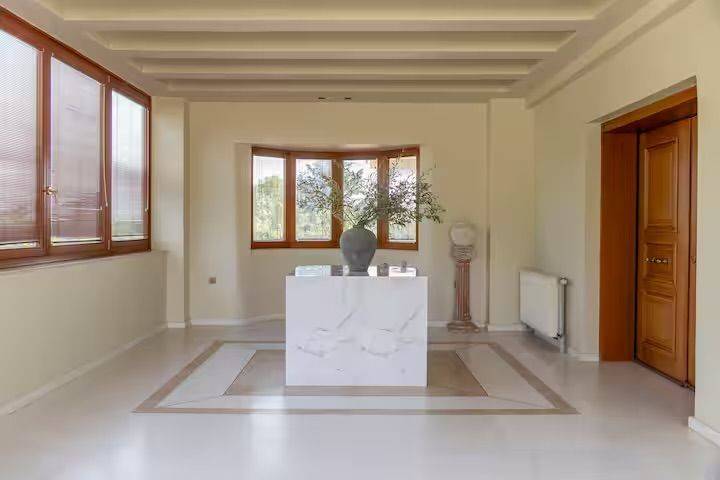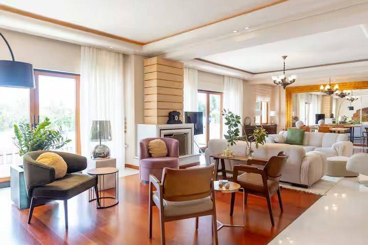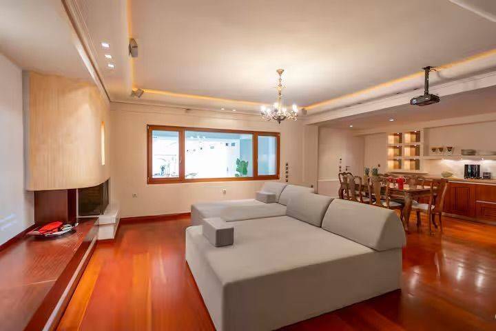 Panorama N.751 is available for rent an impressive and imposing villa with a total area of 650 sq.m. on a plot of 1,200 sq.m. with an indoor swimming pool. The detached house has 6 bedrooms, 5 bathrooms, 1 wc, 2 living rooms, 2 kitchens and a large playroom in the pool area. This is a unique property, which offers comfort, privacy and luxury. Τhe property is unfurnished Rental price: 3,500€ Code property; 7395