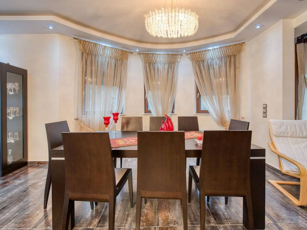 In one of the most tranquil and privileged locations of Drymos, an exceptional luxury detached house with a total area of 352 sq.m., situated on a plot of 800 sq.m., is presented, offering unlimited views and complete privacy. The residence is developed on three levels and has two independent entrances, offering flexibility of use and an ideal layout for both a large family and a dual high-standard residence. It includes 2 fully equipped kitchens, 2 elegant living rooms, 2 dining rooms, 3 spacious bedrooms, and 5 luxurious bathrooms. The large balconies are bathed in natural light and enjoy panoramic views, while the tasteful outdoor space with a courtyard, lush garden, gazebo, and BBQ creates an ideal environment for relaxation and private hospitality. There are 3 comfortable parking spaces available. The residence stands out for its high-quality construction and complete technological equipment: Private internal elevator Marble stairs & Inox railings Smart Home automations Multi-room audio system Video intercom & alarm system Autonomous underfloor heating Independent thermostats per floor Heating with natural gas & oil Advanced solar water heater Selected top-quality materials A rare property of high aesthetics, combining comfort, technology, and energy efficiency, aimed at discerning buyers seeking discreet luxury and quality of life. The Drymos is located near Thessaloniki, offering an ideal choice for prospective property buyers seeking a quiet, natural environment, in close proximity to the city. The area features a variety of properties, from traditional houses and single-family homes to modern residences, catering to the needs of every interested party. It is approximately 25 kilometers from the center of Thessaloniki, making it easily accessible via the Egnatia Odos and other local roads. The journey to the city takes about 30 minutes by car, allowing for easy commutes for work or leisure. Additionally, the area is well-served by public transportation, with regular bus routes connecting Drymos to Thessaloniki and other surrounding areas. It boasts a well-organized local community with all necessary infrastructures and amenities. Drymos is ideal for those who wish to live in a peaceful and friendly community, with direct access to nature. Residents enjoy a clean environment with fresh air and beautiful natural landscapes, ideal for hiking and cycling. The area is safe and offers a high quality of life, with a strong sense of community. For prospective property buyers, Drymos combines the tranquility of the countryside with the convenience of being close to the city. It is an excellent choice for families, professionals working in Thessaloniki, and all those seeking a quality life in a green and welcoming place.