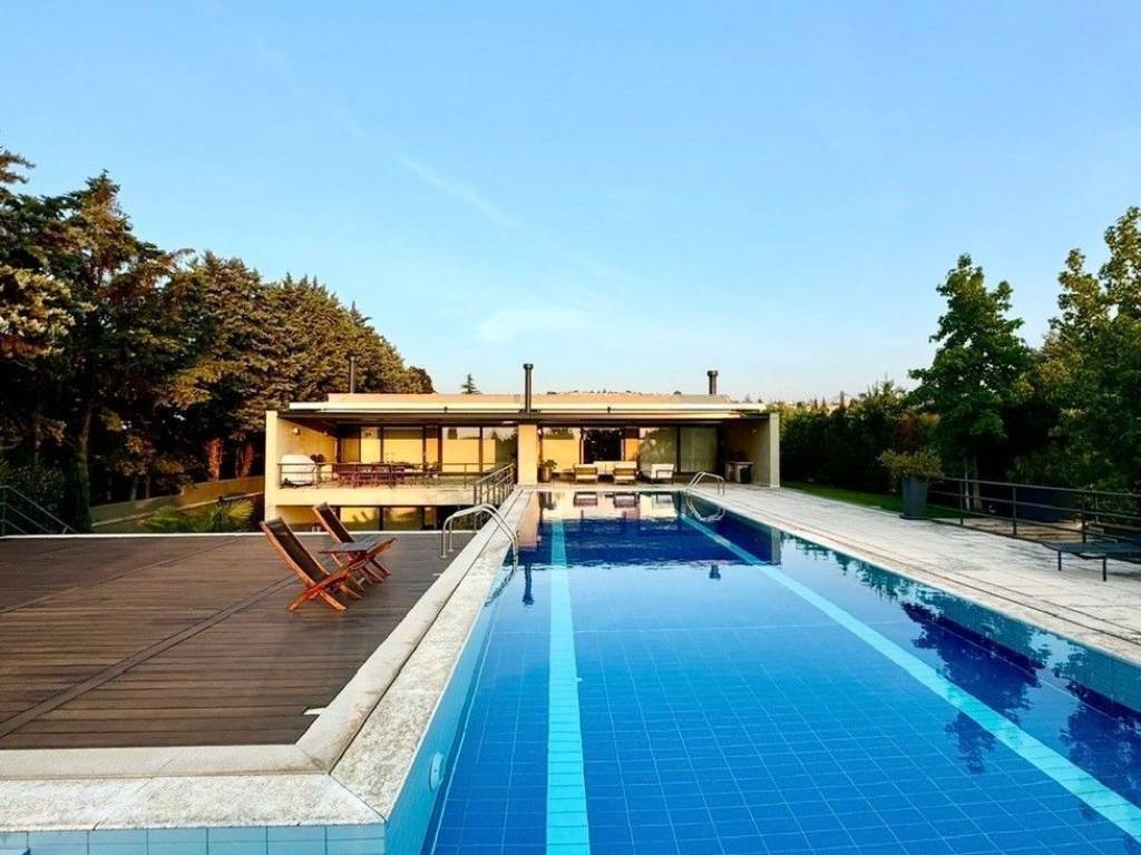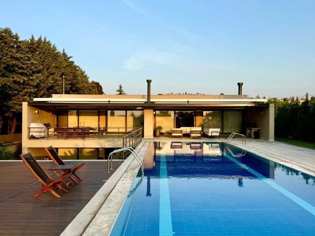 Spyrou Moustakli in a central location is for sale a luxurious 2-level villa with a total area of 500 sq.m. with a large 20-meter swimming pool on a plot of 3.5 acres. The detached house has 4 master bedrooms while in total we have 5 bedrooms, 5 bathrooms, 2 living rooms, 2 kitchens, dining room, wine cellar, Hammam, sauna and closed parking. A value for money property with many possibilities for garden development. Selling price: €1,400,000
