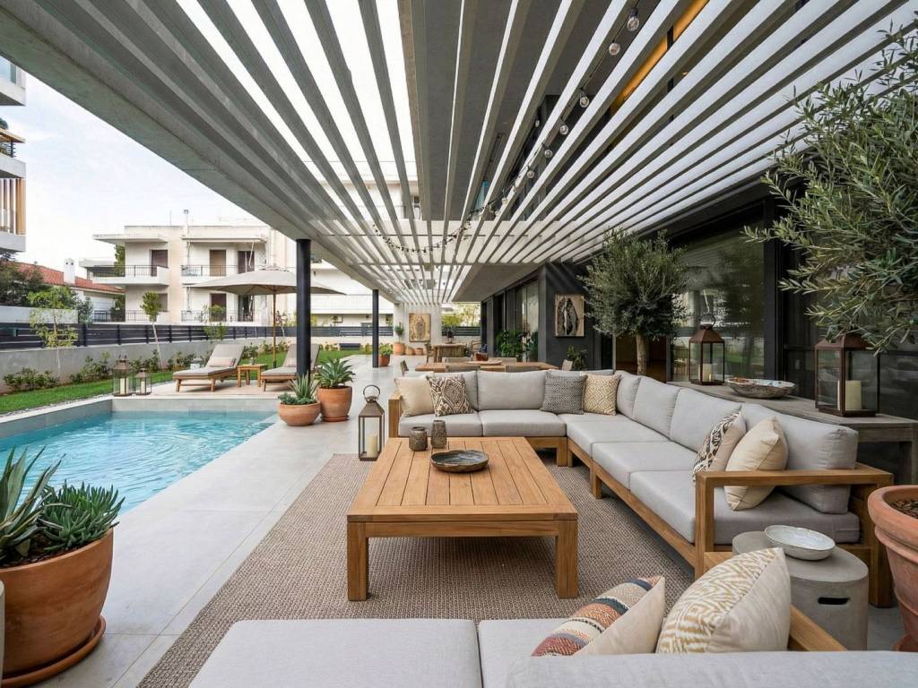 In one of the most privileged locations of Vrilissia, a newly built maisonette of 201 sq.m. is available for rent, which is truly a rare find for the area. The property redefines the concept of luxury living, combining absolute privacy with a minimal architectural aesthetic that impresses at first glance. The residence spans two levels, with the ground floor hosting an imposing reception area. The living room with an energy-efficient fireplace is surrounded by large openings that allow natural light to diffuse everywhere, eliminating the boundaries between indoor and outdoor spaces. The kitchen is independent, designed with an emphasis on functionality, while the level is completed with an elegant guest toilet. The internal staircase leads to the upper floor, which consists of three spacious bedrooms, one of which is a Master with a private bathroom, as well as an additional luxurious bath for the other rooms. The outdoor space is the hallmark of the property, featuring a beautiful surrounding garden and an exclusive-use swimming pool, offering an earthly paradise for moments of relaxation. The construction is of superior quality, with oak floors throughout, concealed lighting, integrated curtain rods, and Italian-type switches that highlight the detail. The maisonette is technologically advanced and energy autonomous, featuring underfloor heating with natural gas, full air conditioning, a solar water heater, and energy-efficient window frames with screens. Security is ensured through a reinforced door and alarm system, while the top-quality interior doors complement the premium profile. Finally, the property includes 2 underground parking spaces with a private electric vehicle charger and storage, while the presence of photovoltaic panels for communal use ensures a drastic reduction of fixed expenses, making it an ideal choice without an energy footprint. Vrilissia is just a 30-minute drive from the center of Athens and is ideally located between the bustling suburbs of Maroussi, Chalandri, and Penteli. Unique Features: Vrilissia is a quiet urban suburb with a high quality of life. It is ideal for families as it has many parks and playgrounds and is very close to many international schools. Two popular activity centers are the main squares (Heroes Square and Analipsi Square), around which cafes, elegant restaurants, boutiques, and banks are gathered. Accessibility: It is very close to the Attiki Odos and is served by two suburban railway stations (Doukissis Plakentias Station and Penteli Station) and one metro station (Doukissis Plakentias). Several buses serve destinations in neighboring suburbs as well as the center of Athens. The airport is just a 30-minute drive away and the National Road is 10 minutes by car. Investment Potential: The ideal choice for excellent living close to the city center in a luxurious urban area, with a good return on investment.