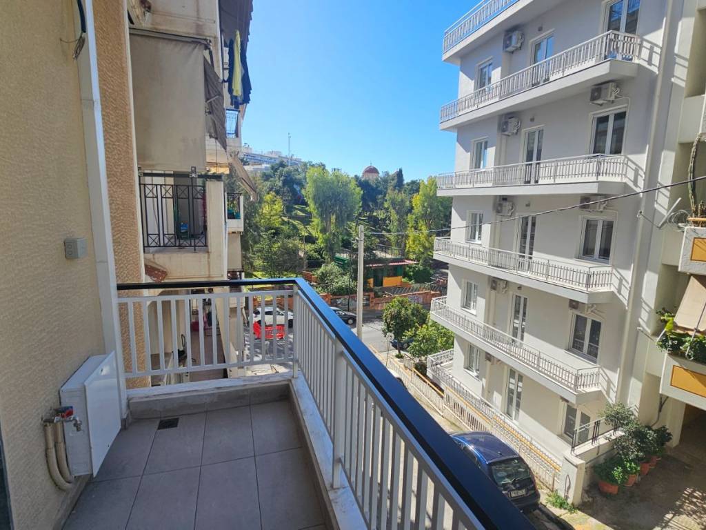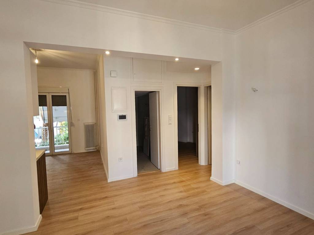 Fully Renovated, Through-Apartment, Very Bright – Axariou 4. A through, airy and very bright apartment on an elevated 1st floor with the feel of a 2nd floor, featuring spacious front and rear balconies large enough for a dining table and an open view to the park. The property has undergone a full and modern renovation, including new plumbing and electrical installations, new aluminum window frames with double-glazed energy-efficient windows, a new kitchen with built-in oven and cooktop and provision for a built-in dishwasher, TV outlet, awnings, fiber-optic internet socket inside the apartment, and pre-installation for autonomous heating with natural gas (piping installed; radiators and boiler not installed). An ideal choice for owner-occupation or investment in a quiet, green area.