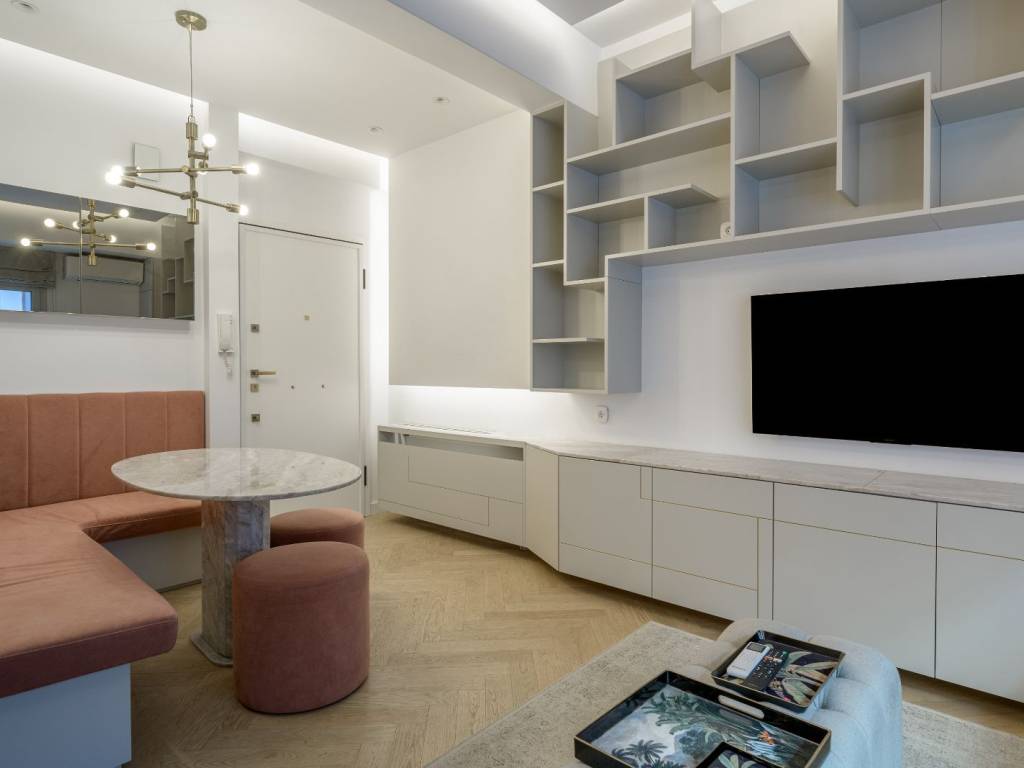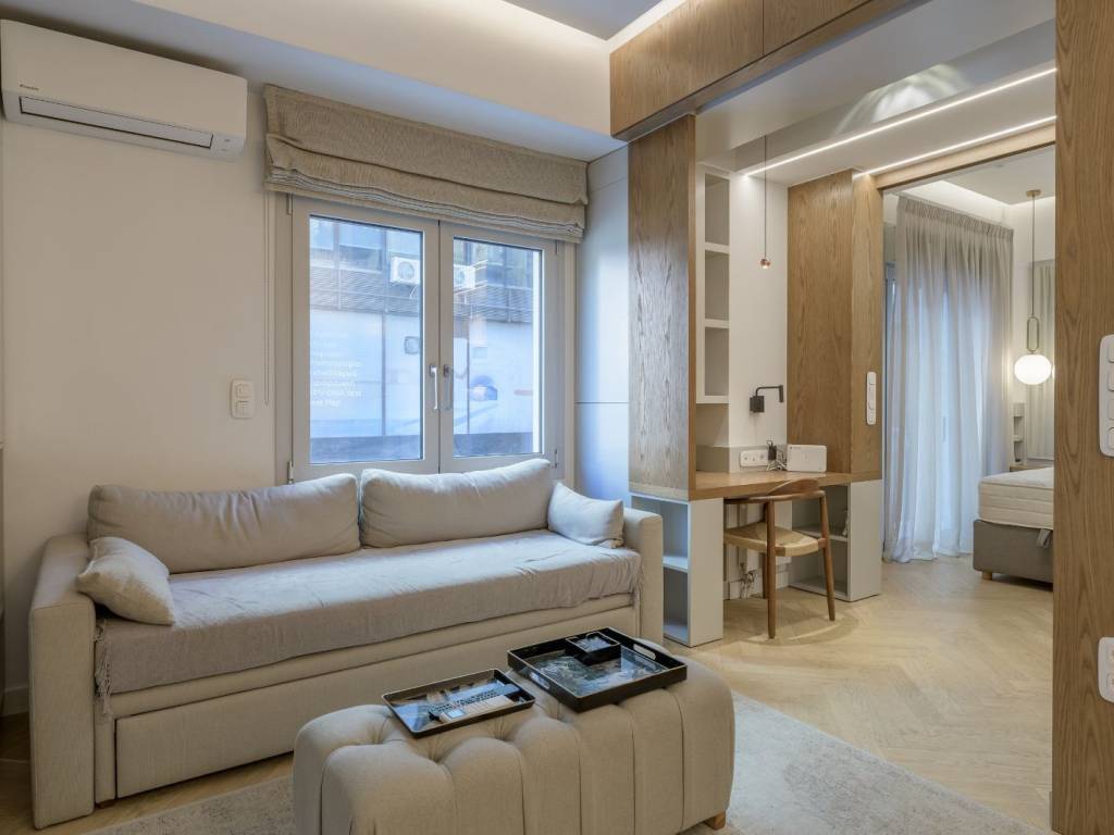 An excellent, fully furnished apartment in a prime location in Kolonaki. The 40 sq.m. apartment is located on the 1st floor of a well-maintained apartment building. It consists of a bright living room with a comfortable sofa and a built-in dining area. There is also a practical, fully equipped kitchen. The bedroom offers ample wardrobe space and access to a front-facing balcony. Additionally, there is 1 spacious bathroom. The apartment is fully furnished and equipped, featuring autonomous natural gas heating and air conditioning in all areas. An outstanding apartment in a central and highly sought-after neighborhood of Kolonaki.