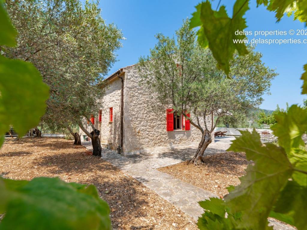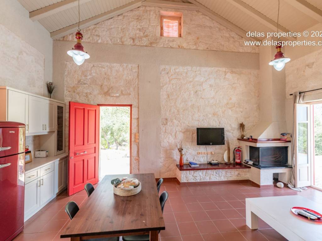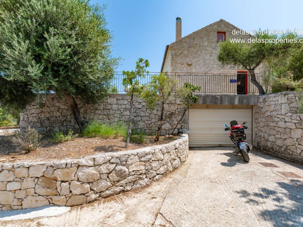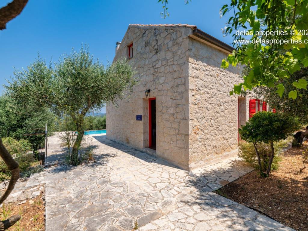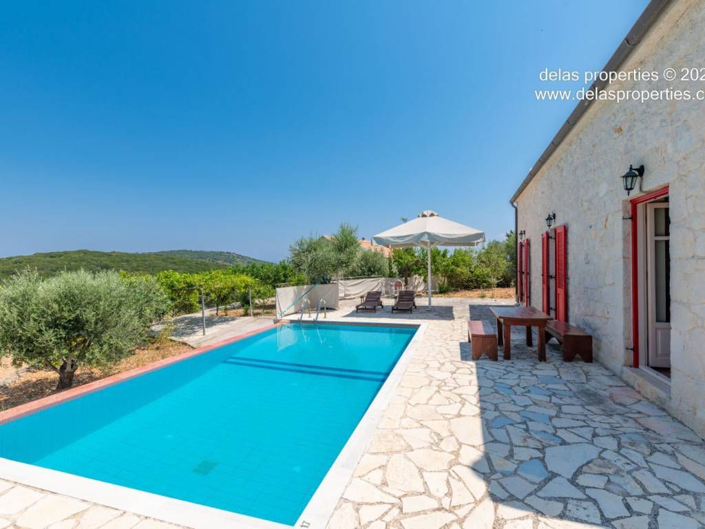 In the peaceful hillside area of Anavrytikes, just south of Vathy, this independent stone villa is offered for sale in a setting that brings together privacy, tranquillity and easy access both to the sea and to the island’s main town. The area lies outside the town plan, with scattered homes set naturally within the landscape rather than around a dense settlement. Vathy’s harbour and centre are approximately 3.2 km away, while Kaminia Beach is around 1.5 km from the property. This gives the villa one of the qualities many buyers look for on Ithaca: it feels quiet and removed, yet remains comfortably close to everything needed for daily life and summer living. The house is a single-storey stone-built residence of 76.63 sq.m., set within its own vertical ownership of 1,585.06 sq.m. The main living space is bright and welcoming, with an exposed timber roof that gives both height and volume to the sitting room and kitchen area. Stone, wood and direct openings to the outdoor spaces create an atmosphere that feels warm, calm and unforced. The villa offers two bedrooms and two bathrooms, one for each bedroom, a layout that works particularly well both for private use and for hosting family or guests. The house is well proportioned and easy to live in: not oversized, but comfortable and well balanced. The internal roof volume also offers potential for the future creation of a loft space, should a buyer wish to explore it. Outside, daily life naturally centres around the 29.46 sq.m. private swimming pool and the 38.44 sq.m. pergola areas, which create different zones of shade and outdoor sitting throughout the day. There is also a built-in barbecue and traditional wood oven, while the plot itself offers a good sense of separation and privacy without becoming difficult to maintain. Olive trees, stone retaining walls and the surrounding landscaping connect the house to its setting in a natural and understated way. In addition, the property includes a 49.50 sq.m. basement auxiliary space, a 34.55 sq.m. ground-floor storage building, and a 30.94 sq.m. underground water tank. Energy Performance Certificate: Category C. This is a home that does not rely on excess or display. Its appeal lies in the quality of its setting, its proportions, its privacy and the way it feels when you are there. For a buyer looking for an authentic stone villa on Ithaca, close to Vathy and close to the sea, yet set within a peaceful natural environment, this is a particularly attractive opportunity. Properties of this kind — with stone character, a private pool, independent vertical ownership and such a balanced location — rarely come to market. For more information or a viewing: Stavros Dellaportas – +30 6977683147 (WhatsApp & Viber) delas@otenet.gr www.delasproperties.com