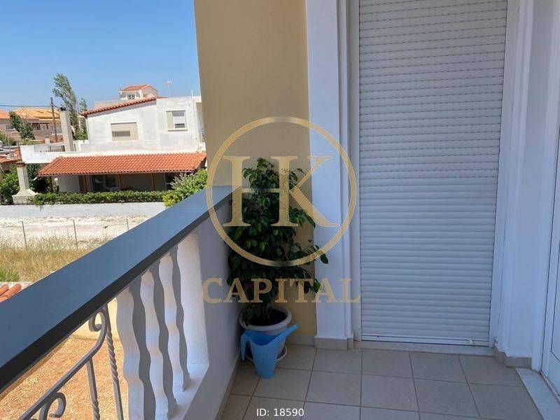 Kalyvia Thorikou, Centre - Apartment 120sqm partially furnished, bedrooms 2, levels 2, year built 2008, energy class C, 2 living rooms, hall, 2 kitchens, 2 bathrooms, heating type: autonomous (oil), air condition, parking, quiet, dual aspect apartment, luminous, unobstructed view view, frontage, solar heater, fireplace, balconies, large balconies, garden, aluminum frames, double glazed windows, door screen, wood & tile floors, night electricity discount rate, secure door, alarm, video doorbell, luxurious, playroom, pets allowed, within city plan, residential zone, south-eastern orientation, access from asphalt, investment property, special offer, commercial use.