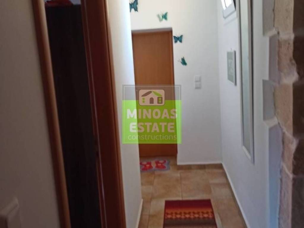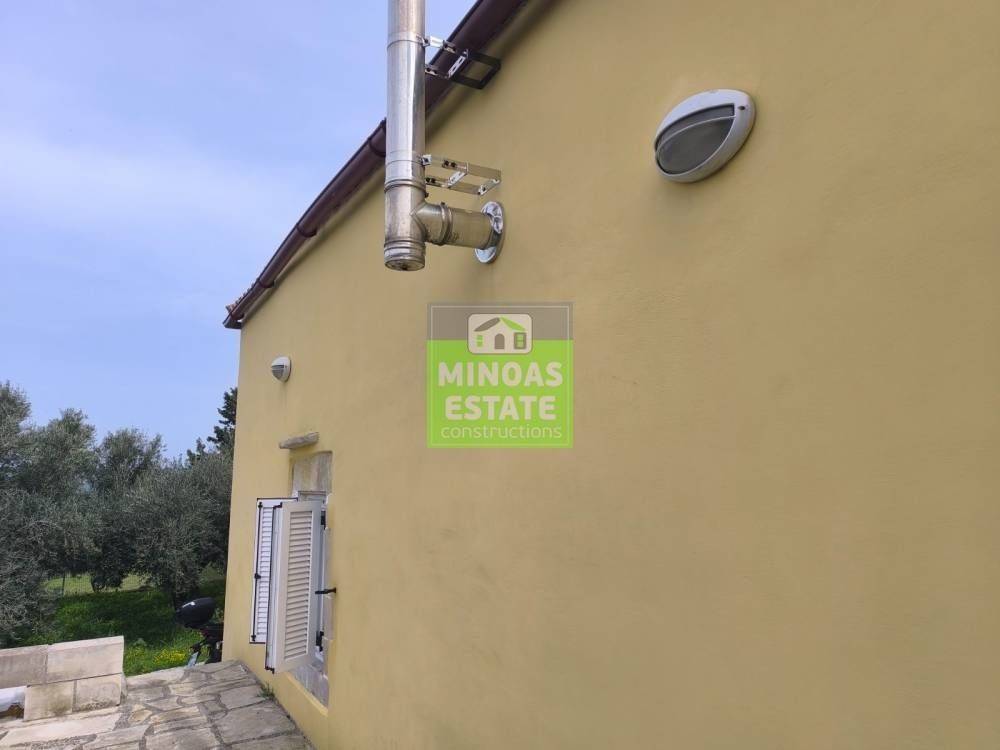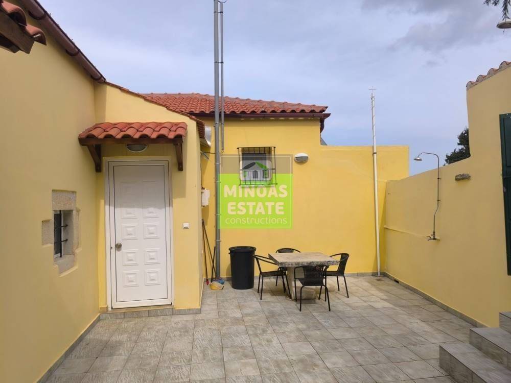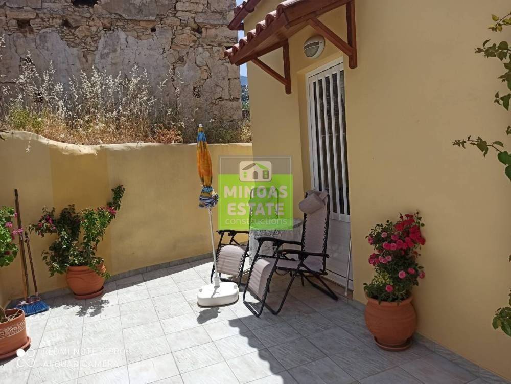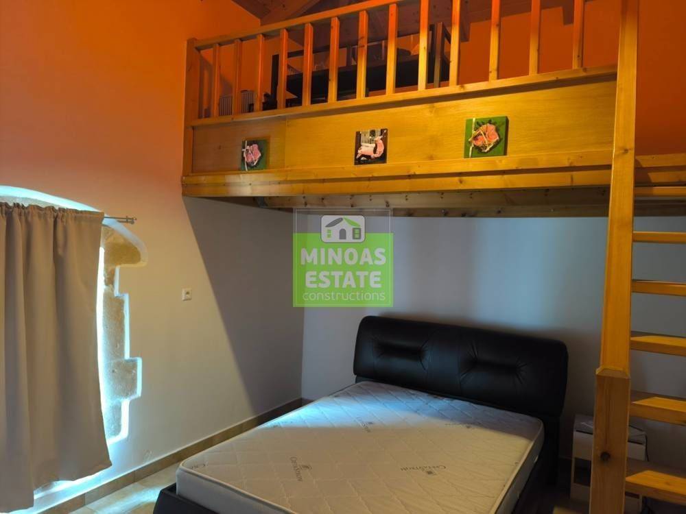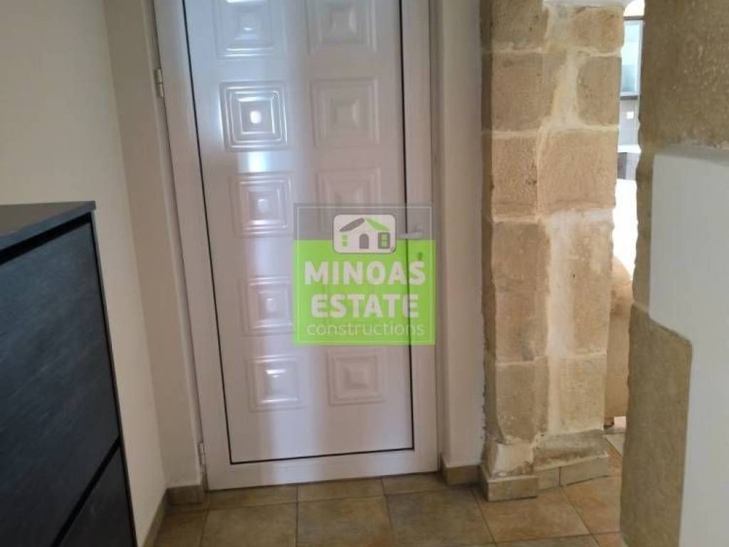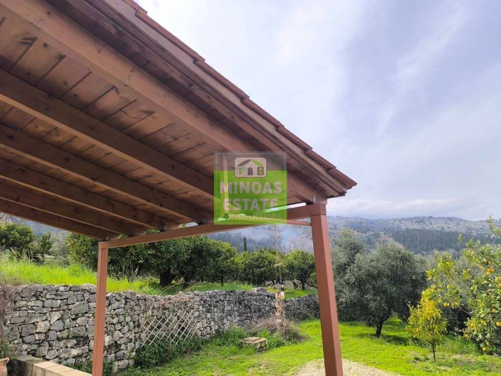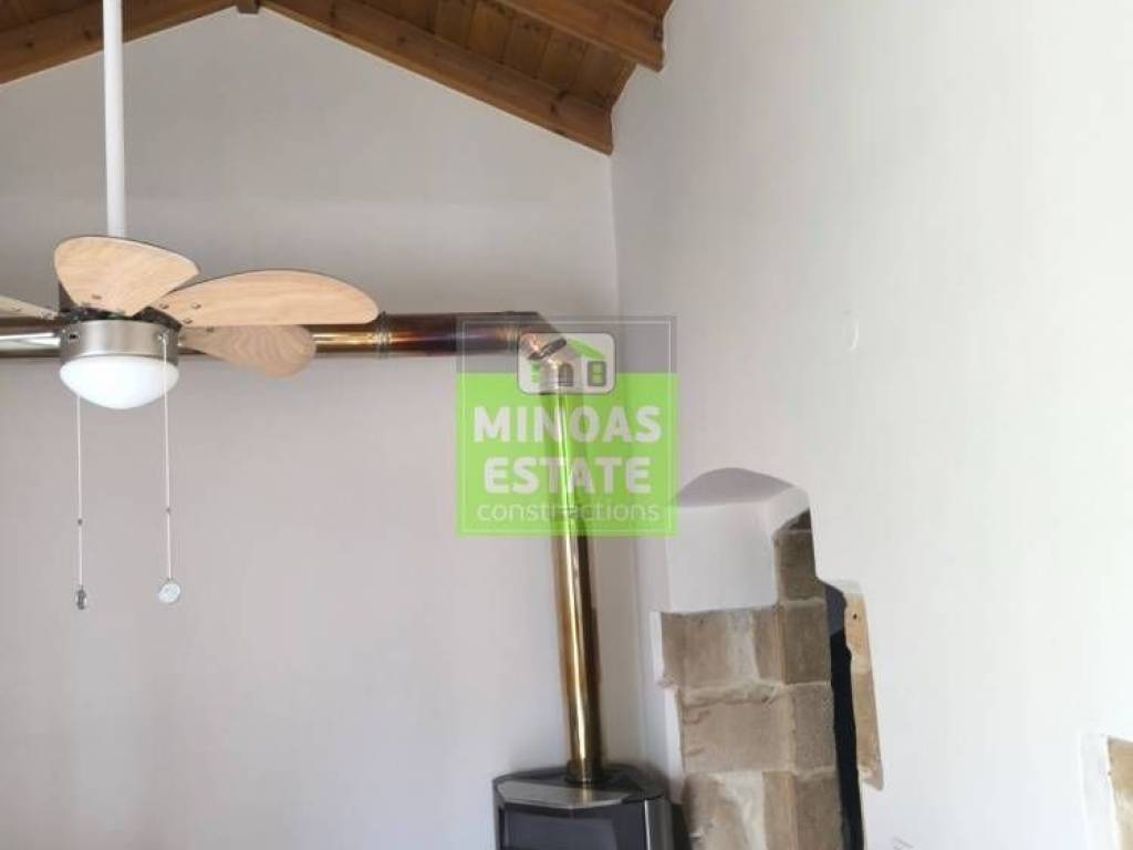 Fre, Center: Fully renovated stone-built Detached House 100 sq.m. for rent. in 3000 sq.m. plot with olives with individual heating (stove and air conditioning). It consists of 2 bedrooms and bathroom, 1 living room kitchen, Garden and bathroom. It is fully furnished, equipped, with electrical appliances, painted, close to SCHOOLS-PHARMACY-SUPERMARKET and has a mountain view, aluminum frames with double glazing, tiled floors, solar water heater. It is ideal for employees. (rent min. 1 year) Price 750€ | Property Code: #E-201021