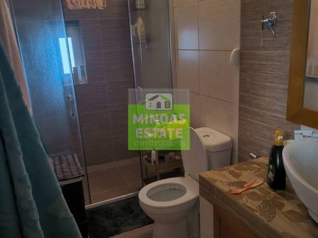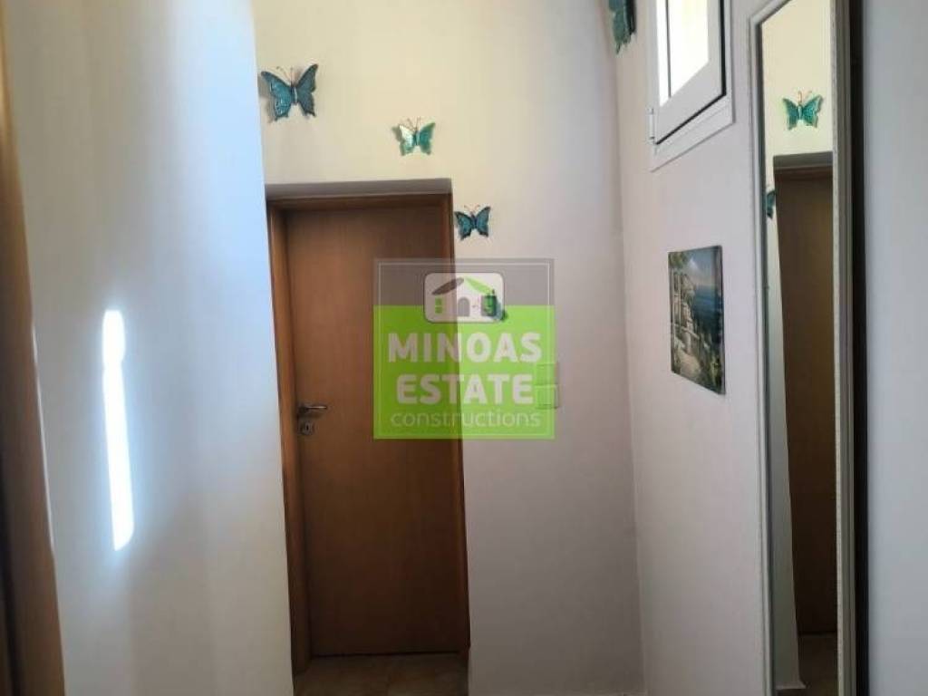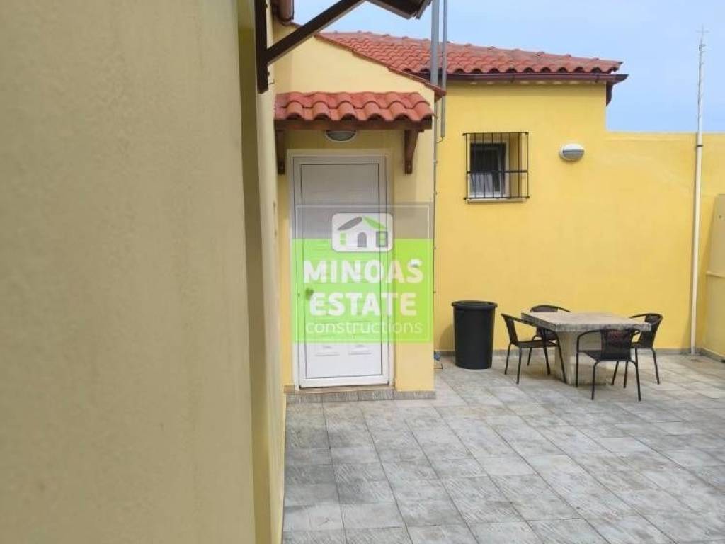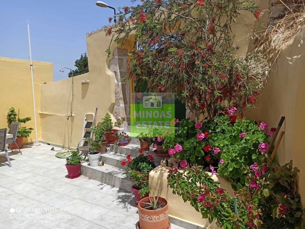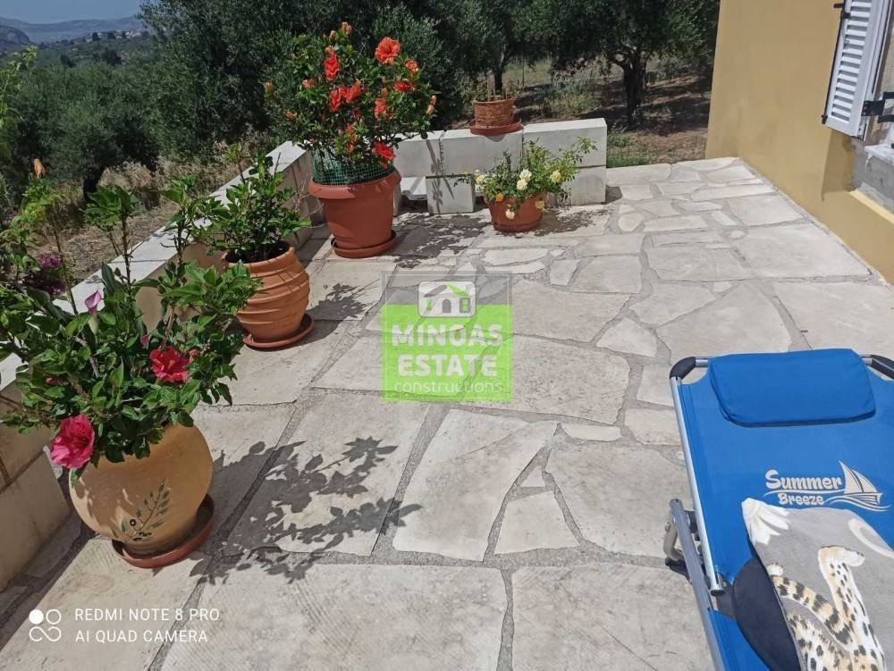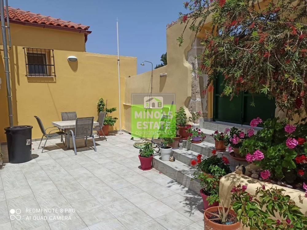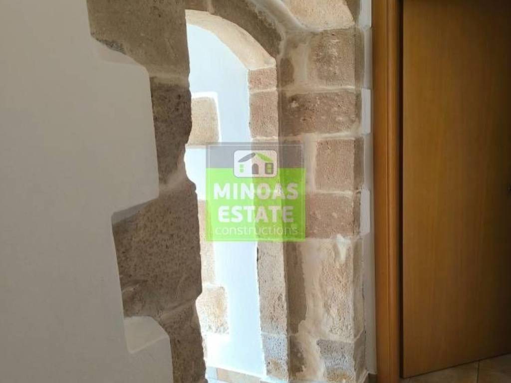 Fre, Center: Fully renovated stone-built Detached House 100 sq.m. for rent. in 3000 sq.m. plot with olives with individual heating (stove and air conditioning). It consists of 2 bedrooms and bathroom, 1 living room kitchen, Garden and bathroom. It is fully furnished, equipped, with electrical appliances, painted, close to SCHOOLS-PHARMACY-SUPERMARKET and has a mountain view, aluminum frames with double glazing, tiled floors, solar water heater. It is ideal for employees. (rent min. 1 year) Price 750€ | Property Code: #E-201021