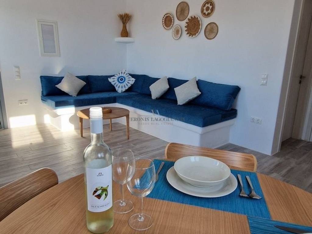 For sale in the Kastraki area of Naxos — in an excellent location, bright 1st floor apartment of 40m2 and a residence of 86m2 The apartment consists of: • Open-plan living room with kitchen • One bedroom • One bathroom. It has a large terrace with unobstructed views of Kastraki beach and Mikri Vigla. The Residence consists of: • Ground floor: open-plan living room — kitchen and WC. • Semi-basement: two bedrooms and two bathrooms. • Spacious terrace with direct access to the pool and private garden. Fully furnished and ready for immediate use. Located just 10 minutes walk from Kastraki beach. Ideal choice for both a holiday home and a tourist farm. Price 570.000€ Code: 640664 Veronis Lagogiannis Naxos Real Estate www.naxosrealestate.com www.naxosrealestatepremium.com