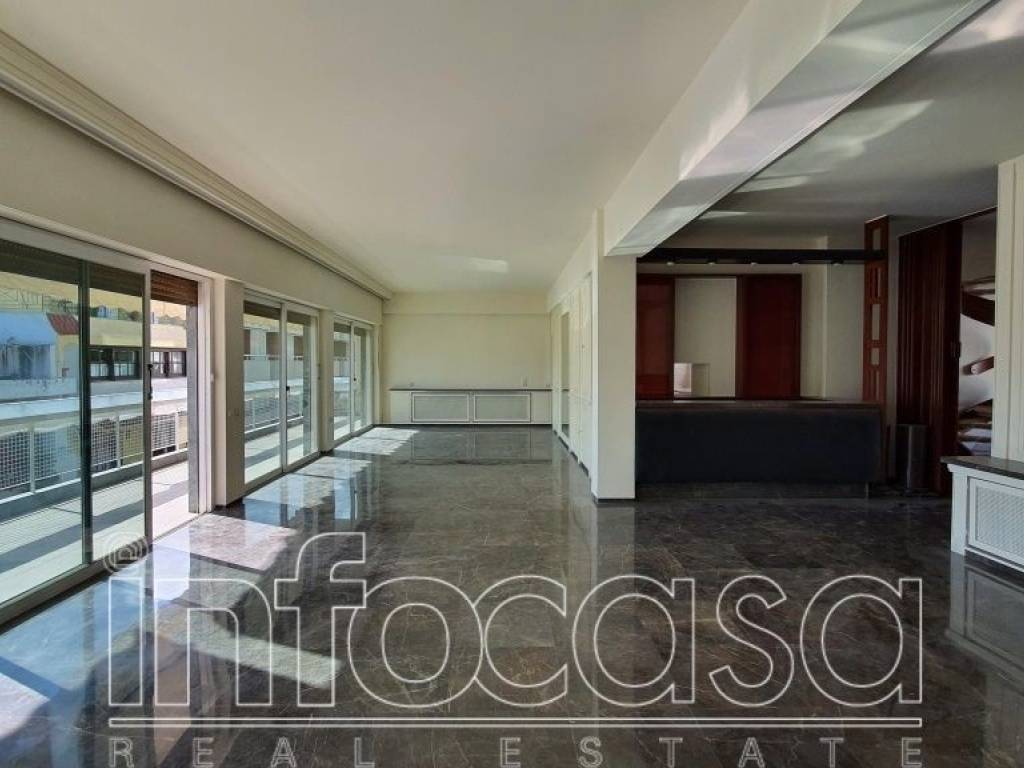 Αpartment of 330 sqm, in a well-kept apartment building, 4th floor & 5th floor, with great views and 2 garage spaces. On the 4th floor level we find 2 bedrooms, bathroom & WC, independent kitchen and spacious reception area with fireplace. On the 5th floor we find an open space with access to the roof garden and bathroom. It provides large verandas, autonomous heating with independent gas burner, air conditioning, oak wood floors, aluminum window frames and a security door. Contact person: Konstantinos Tsenes +306942644814.
