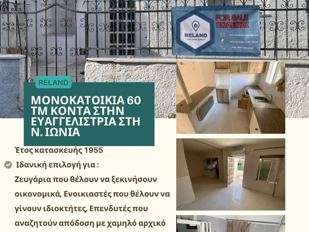 RELAND Νέα Ιωνία, Βόλος | 60 τ.μ. | Χρήζει Ανακαίνισης | Ευκαιρία Αναζητάτε ένα ακίνητο σε προσιτή τιμή με δυνατότητες διαμόρφωσης; Σας παρουσιάζουμε μια μονοκατοικία που μπορεί να μετατραπεί στο σπίτι των ονείρων σας – με λίγη φαντασία και μεράκι! ️ ΧΑΡΑΚΤΗΡΙΣΤΙΚΑ ΑΚΙΝΗΤΟΥ: Εμβαδόν: 60 τ.μ. Ενιαίος χώρος σαλονοκουζίνας, διαχωρισμένος με πάσο 1 υπνοδωμάτιο Μπάνιο Χολ Αυλή – για να απολαύσετε τον πρωινό σας καφέ ή για πρακτική χρήση ΤΟΠΟΘΕΣΙΑ – ΠΡΑΚΤΙΚΗ ΚΑΘΗΜΕΡΙΝΟΤΗΤΑ Σε ήσυχη και εξυπηρετική γειτονιά της Νέας Ιωνίας Κοντά σε: ✅ Super Market ✅ Σχολεία ✅ Στάση αστικού ΧΡΕΙΑΖΕΤΑΙ ΑΝΑΚΑΙΝΙΣΗ – ΑΛΛΑ... Το ακίνητο είναι καλοδιατηρημένο για την ηλικία του, προσφέρει στέρεες βάσεις, και αποτελεί ιδανικό project για: Ζευγάρια που θέλουν να ξεκινήσουν οικονομικά Ενοικιαστές που θέλουν να γίνουν ιδιοκτήτες Επενδυτές που αναζητούν απόδοση με χαμηλό αρχικό κεφάλαιο Για περισσότερες πληροφορίες η προγραμματισμό ραντεβού επικοινωνήστε στο : 6970080280