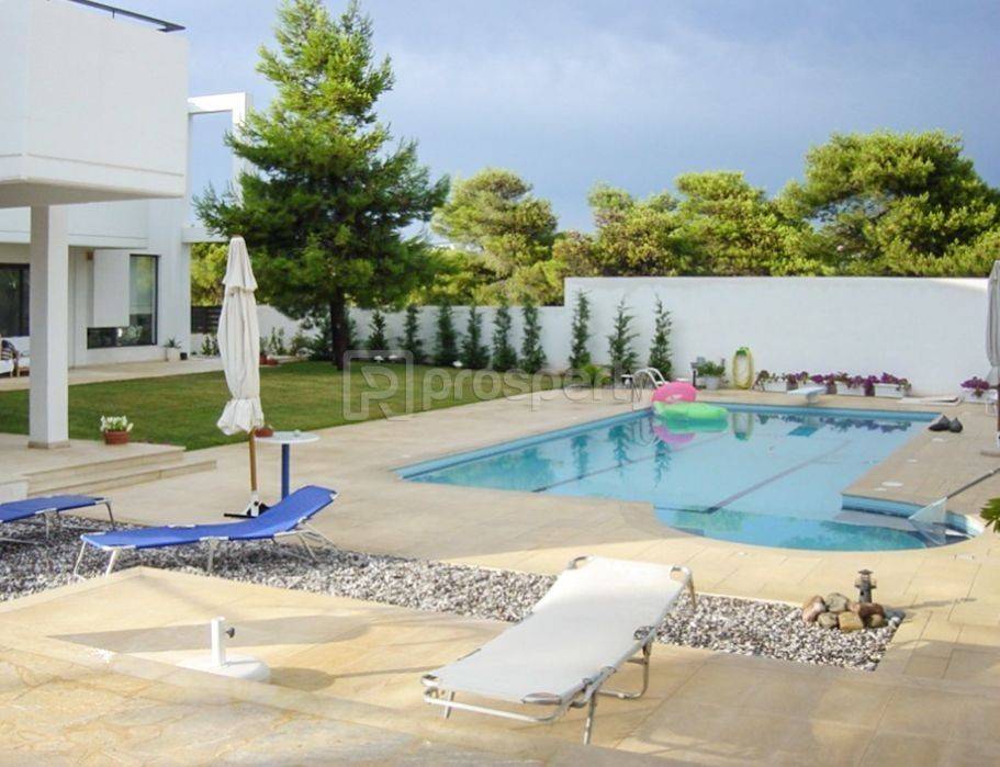 In the prestigious and lush area of Kallitechnoupoli, Rafina, an impressive luxury detached villa of 750 sq.m. is offered for sale, set on a 1,060 sq.m. plot with unobstructed green views and a desirable south-eastern orientation. Built in 2004 and maintained in excellent condition, this remarkable three-level residence combines refined architecture, privacy, and high-end living standards. The property features 5 bedrooms, including 3 master suites, a guest room, and a staff room, along with 5 bathrooms and 1 WC. The master suite stands out with its en suite bathroom and a spacious two-part walk-in wardrobe. The elegant reception areas include three living rooms with three fireplaces, highlighted by a striking double-sided fireplace with reinforced glass, offering captivating views of the garden and pool. Two fully equipped kitchens with a central island, a playroom, private gym, attic, and extensive storage spaces complete a residence designed for comfort and sophisticated entertaining. The lower level can function as an independent apartment, ideal for guests or staff. The outdoor areas create a private oasis, featuring a beautifully landscaped garden with lawn, tall perimeter trees for enhanced privacy, and an impressive 10 x 5 m swimming pool with hydromassage. Spacious verandas and a BBQ area provide the perfect setting for relaxation and social gatherings. Additional features include autonomous oil heating per level, full heating and cooling air-conditioning system, solar water heater, boiler, triple-glazed aluminum frames, thermal and sound insulation, internal elevator, automatic garage door, and a closed garage accommodating up to three vehicles. A comprehensive alarm and CCTV system with six cameras ensures maximum security. A rare opportunity to acquire a distinguished residence that embodies elegance, comfort, and exclusivity in one of Eastern Attica’s most refined residential areas. With the purchase of the property, we fully undertake the notarization and transfer process, ensuring that the transaction is completed safely and reliably. https://marketplace.theprosperty.com/listings/16039 ☎️ 210 6812500