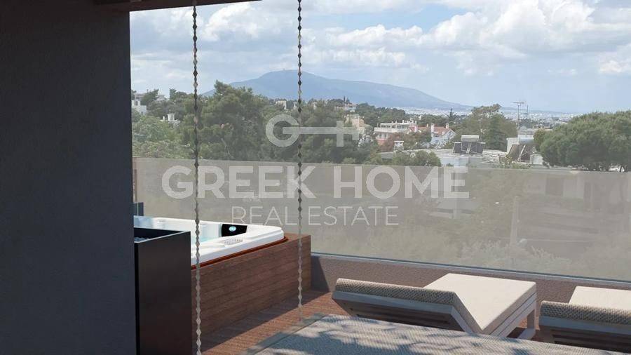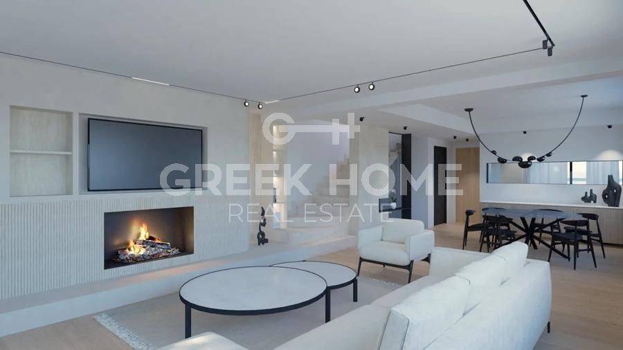 Kifissia, Politia - Maisonette 315sqm plot 350sqm, bedrooms 5, master bedroom, levels 5, basement - semi-basement - ground floor - 1st - 2nd, under construction, year built 2010, energy class B+, 2 living rooms, 2 kitchens, 2 bathrooms, wc, heating type: individual unit (heat pump), parking covered, quiet, luminous, unobstructed view view, frontage, painted, electric roller shutters, storage space, solar heater, boiler, external thermal insulation, fireplace, balconies, large balconies, elevator, garden, garden 138sqm, aluminum frames, double glazed windows, door screen, wood & tile floors, handicap ramp, night electricity discount rate, secure door, alarm, video doorbell, luxurious, under floor heating, internal staircase, barbeque, jacuzzi, playroom, gym, service room, internal elevator, pets allowed, east-southern orientation, close to bus stop (up to 100m), close to square (up to 200m).