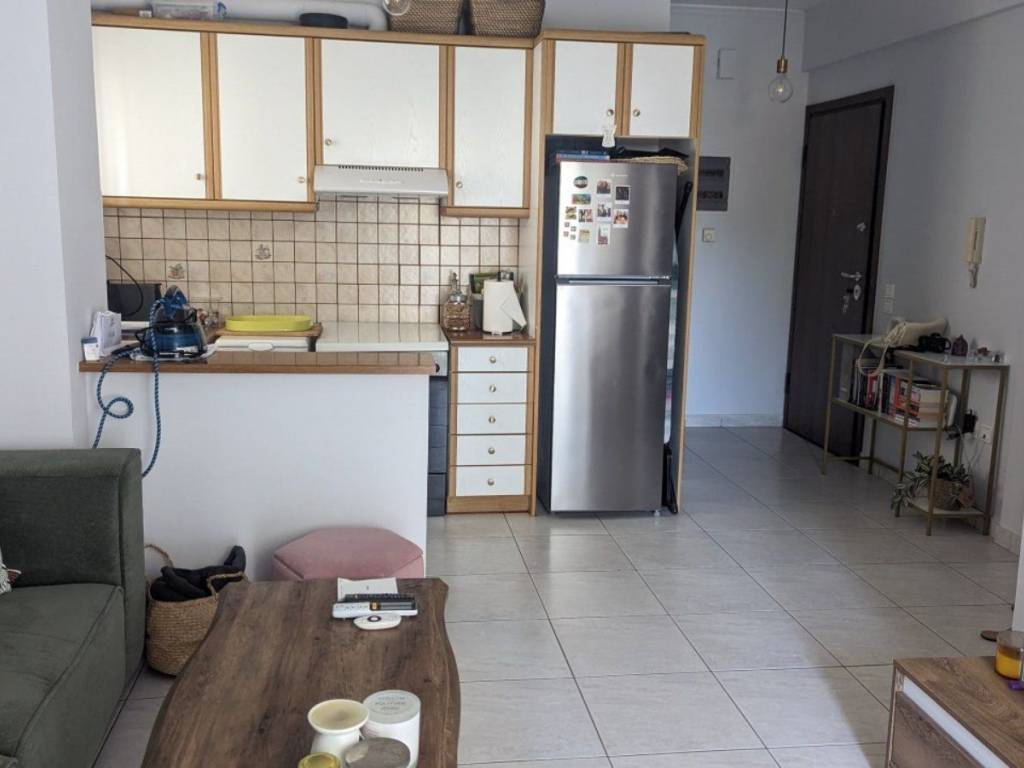 A lovely 46 s.m. apartment located at a peaceful green area of Haidari, set on the 1st floor of a small block of flats built in 1995. Fully renovated with 1 bedroom, bathroom and living room with an open kitchen. It has two balconies and indipendent heating system. It also has a small storage room at the underground level. Price 130,000 euros.