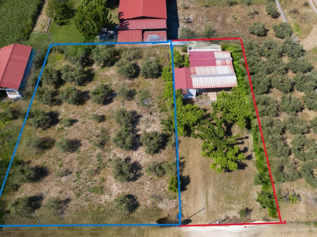 Το ακίνητο είναι αυτό τη μπλέ διαγράμμιση. Παρέχεται ανενόχλητα νερό (αρτεσιανό) από το διπλανό οικόπεδο και περιέχει 40 δέντρα ελιές. Είναι κατάλληλο για τοποθέτηση τροχόσπιτου ή αγροτική εκμετάλλευση. Οι ελιές αποδίδουν 200 +++ κιλά λάδι.