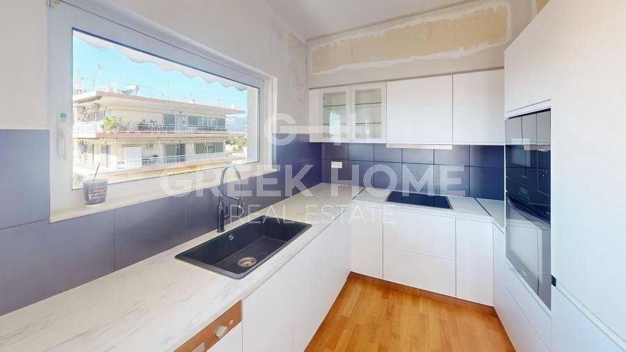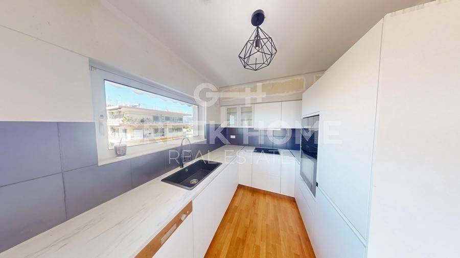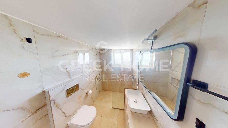 Marousi, Neo Terma - Apartment 140sqm electrical appliances furnished, bedrooms 3, 5th, penthouse, fully renovated, year built 1980, renovation year 2025, energy class Exempt, living room, hall, kitchen, 2 bathrooms, heating type: autonomous (natural gas), air condition, parking ground floor,2, quiet, dual aspect apartment, luminous, corner, unobstructed view, frontage, painted, electric roller shutters, storage space, solar heater, external thermal insulation, balconies, large balconies, tents, elevator, loft storage, built in appliances, aluminum frames, double glazed windows, door screen, wood & tile floors, separate kitchen, secure door, alarm, video doorbell, luxurious, pets allowed, east-southern orientation, price is negotiable, investment property, close to park (up to 100m), close to metro/train (up to 500m), close to market (up to 100m).