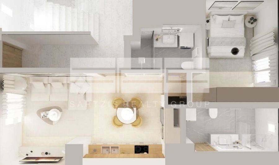 Gerakas, Stavros, Apartment For Sale, 57 sq.m., Property Status: under construction, Floor: Ground floor, 1 Level(s), 1 Bedrooms 1 Kitchen(s), 1 Bathroom(s), Heating: Autonomous - Natural Gas, Building Year: 2025, Energy Certificate: A, 1 parking(s), Floor type: Tiles, Type of door frames: Aluminum, Features: Elevator, Security door, Security alarm, CCTV, Storage room, Fireplace, Double Glazed Windows, Window Screens, Balcony Cover, Balconies, Roadside, Bright, AirConditioning, Solar water system, New Construction, Price: 219.000€. Sartzis Realty Group, Tel: 2102208679, email: info@srg.com.gr - www.srg.com.gr/