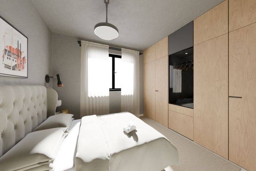 Διαμέρισμα 2ου ορόφου 104 τ.μ ( 72,58 τ.μ καθαρά) στα Ποταμούδια. Το διαμέρισμα ανήκει σε οικοδομή υπό ανέγερση και αποτελείται από 2 δωμάτια, σαλόνι-κουζίνα wc και μπάνιο. Διαθέτει αποθήκη 9,31 τ.μ στο υπόγειο της οικοδομής, θέση στάθμευσης, κουφώματα P.V.C, πλακάκι στα δάπεδα, αντλία θερμότητας, ηλιακό θερμοσίφωνα, πόρτα ασφαλείας, βεράντες.