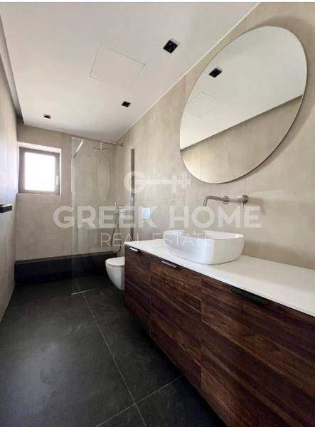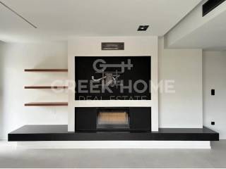 Pefki, Kato Pefki - Apartment 122sqm partially furnished, bedrooms 3, 3rd, ready to use, year built 2025, energy class A+, living room, hall, kitchen, 2 bathrooms, wc, heating type: autonomous (natural gas), air condition, parking covered, quiet, dual aspect apartment, luminous, corner, unobstructed view, frontage, painted, drop ceiling, electric roller shutters, storage space 7sqm, solar heater, boiler, external thermal insulation, fireplace, balconies, large balconies, elevator, built in appliances, thermal shut-off frames, double glazed windows, door screen, ceramic tiles floors, handicap ramp, secure door, alarm, video doorbell, luxurious, under floor heating, smart home, ev charger, satellite, pets allowed, east-southern orientation, investment property, close to metro/train (up to 1000m), close to attiki odos (up to 1000m).